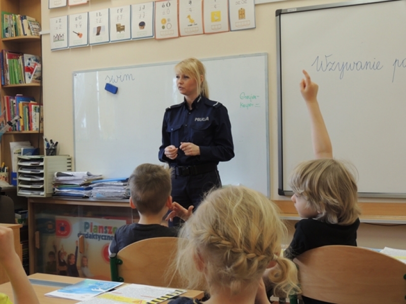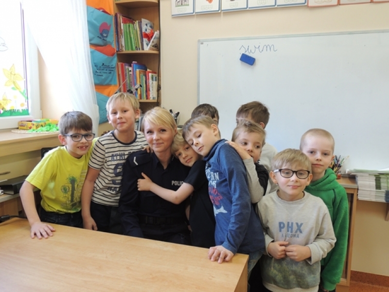 6 kwietnia 2017 r. uczniowie klasy pierwszej spotkali się z policjantką. Celem spotkania było uświadomienie dzieciom, jak powinny zachować się w sytuacjach niebezpiecznych dla nich, m.in. ustalenie właściwych zachowań podczas spotkań z nieznajomymi, rozmowa na temat właściwego zachowywania się dzieci, gdy same pozostają w domu, omówienie sytuacji zagrażających ich życiu i zdrowiu, bezpieczeństwo dzieci w internecie. Pierwszoklasiści chętnie brali udział w pogadance.