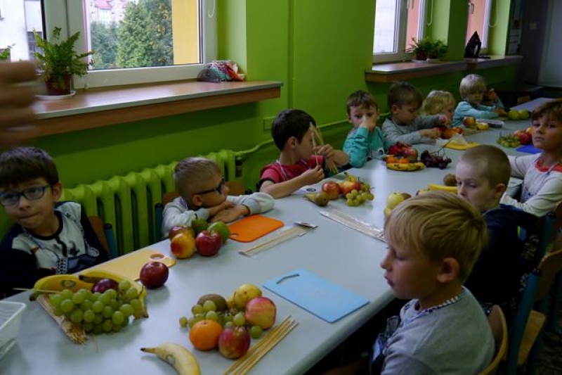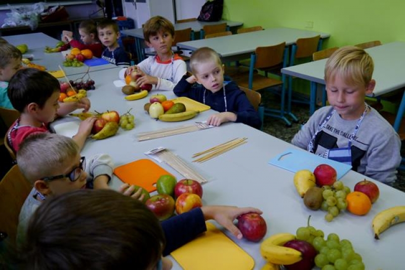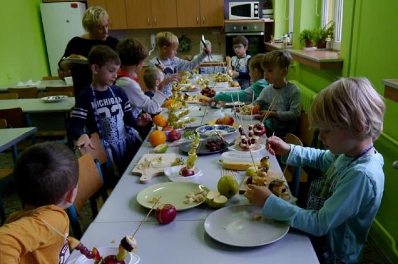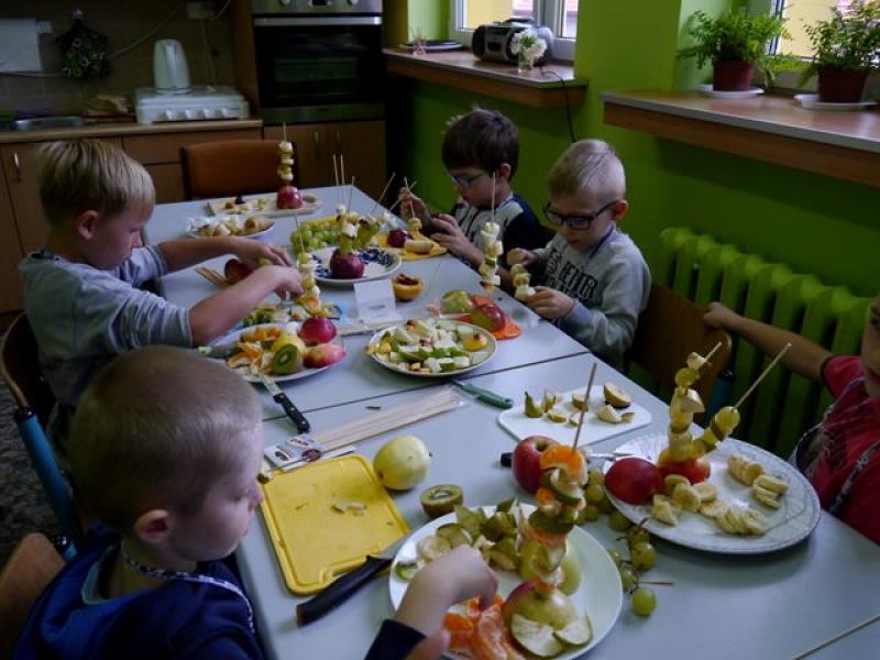 3 października 2016 r. dzieci z klasy pierwszej uczestniczyły w zajęciach kulinarnych mających na celu praktyczne uświadomienie uczniom wartości odżywczych owoców. Dzieci przygotowały potrawę z owoców, takich jak: jabłka, gruszki, śliwki, banany, winogrona i mandarynki. Pokrojone owoce nadziewali oni na patyczki szaszłykowe, a następnie takie owocowe ,,kolce” umieszczali na połówce jabłka. W ten sposób powstały smaczne i zdrowe ,,jeżyki owocowe”.