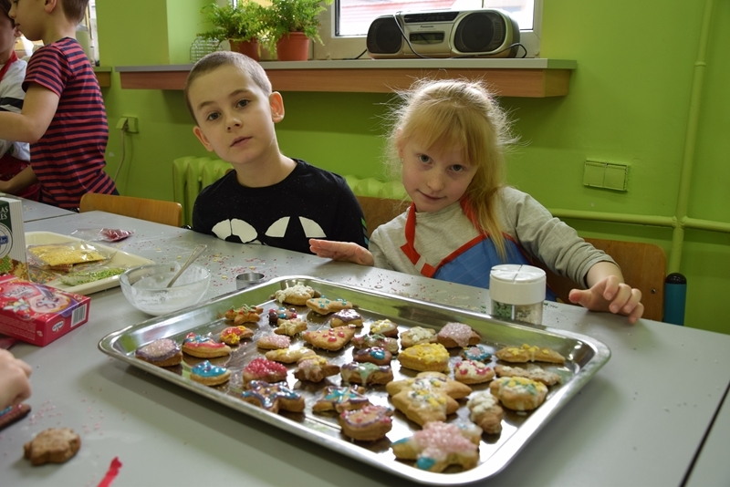 7 grudnia 2016 r., w klasie drugiej odbyły się kulinarne warsztaty świąteczne. Przy świątecznej muzyce dzieci przygotowywały ciasto piernikowe, wałkowały je i wykrawały w nim świąteczne wzorki. Po upieczeniu ciasteczek uczniowie lukrowali i zdobili swoje wypieki. Pierniki będą sprzedawane podczas szkolnego Kiermaszu Bożonarodzeniowego.