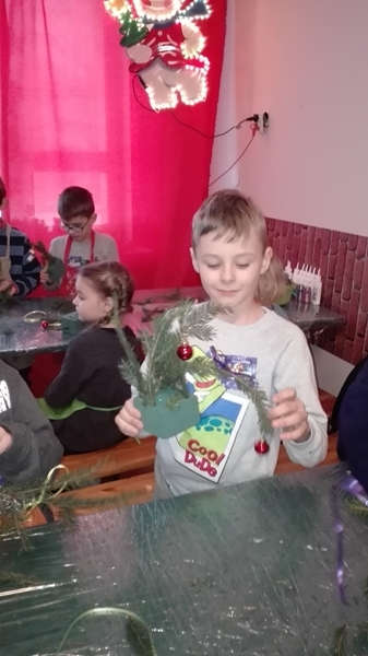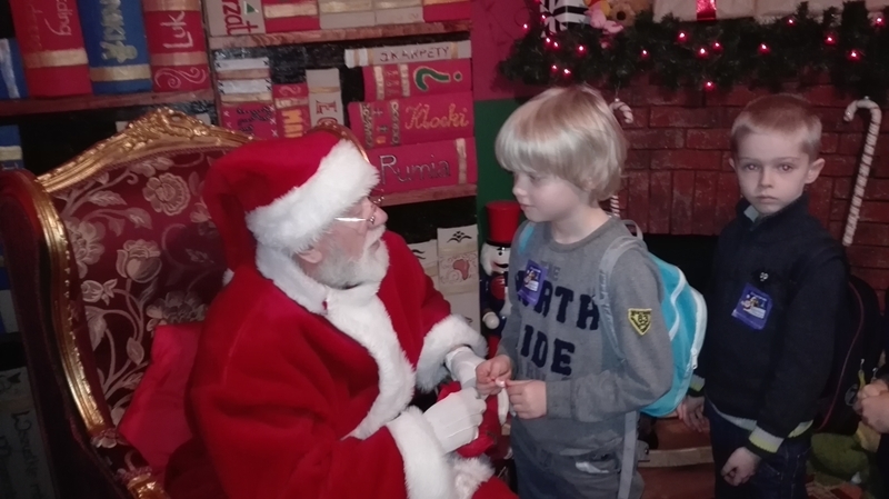 8 grudnia 2016 r. pierwszoklasiści pojechali do Drzewiny na Kaszubach ,aby spotkać się ze Świętym Mikołajem. Uczniowie z zapałem uczestniczyli w odbywających się na ,,Przystanku św.Mikołaja” warsztatach świątecznych, a mianowicie: wykonywali bombkę oraz stroik bożonarodzeniowy. Dzięki elfowi, który oprowadzał dzieci po przystanku, poznali oni tradycje i zwyczaje związane ze Świętami Bożego Narodzenia oraz oglądali film pokazujący, jak powstają szklane bombki. Najwięcej wrażeń dostarczyło im spotkanie i rozmowa ze św.Mikołajem, jak również zakupy w świątecznym sklepiku. Wycieczka była długa, ale bardzo udana!