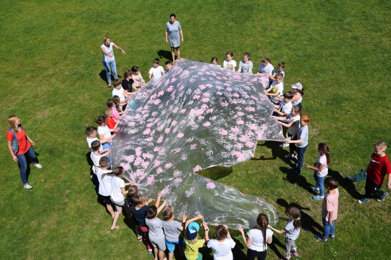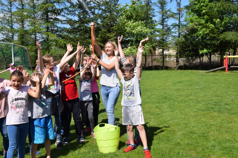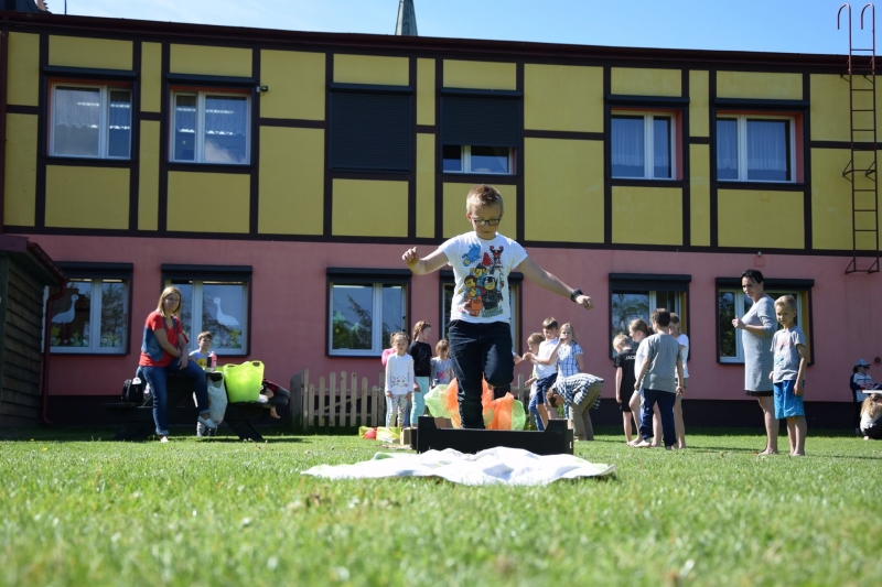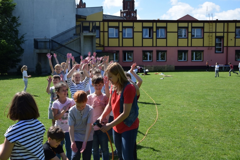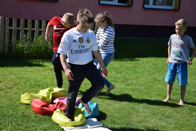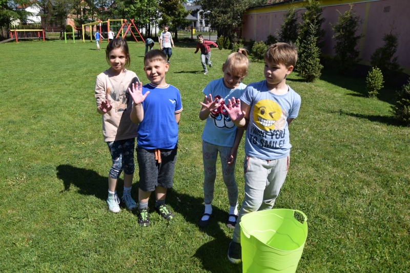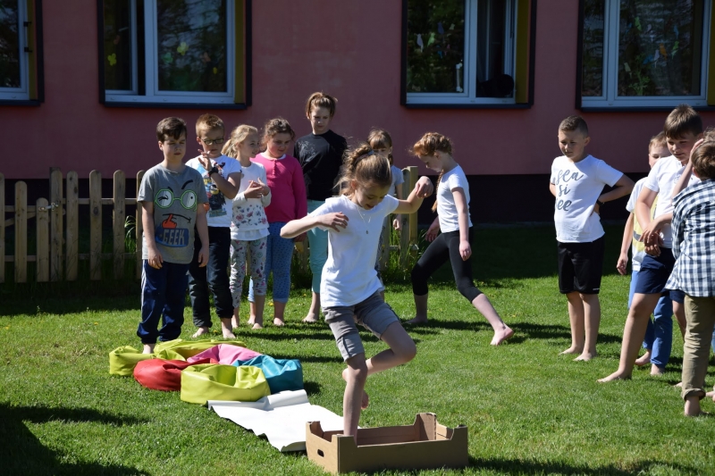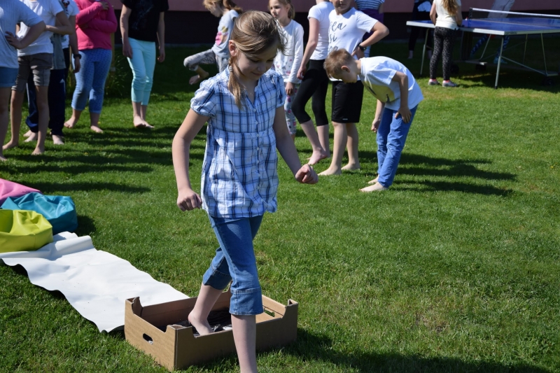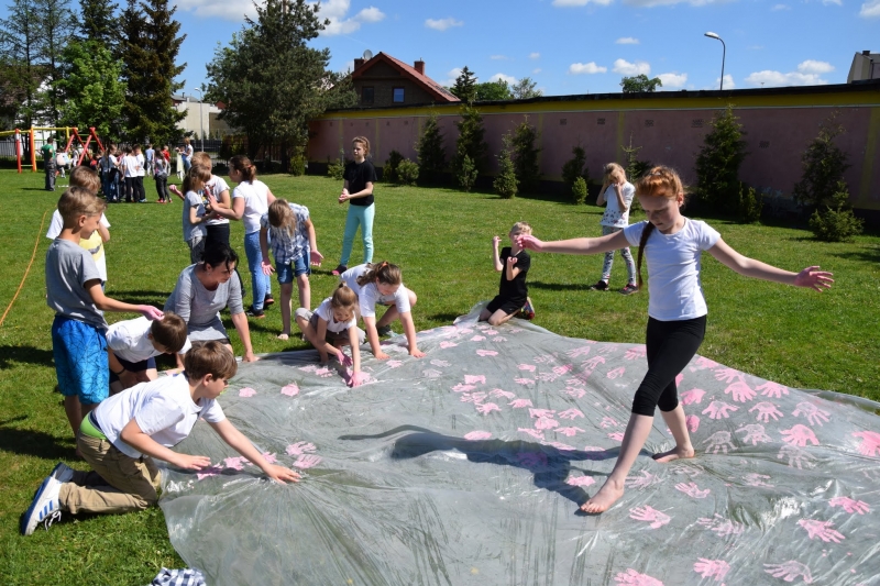 Dnia 22 maja klasy II i III uczestniczyły w zabawach ruchowych. Nauczyciele przygotowali specjalny tor przeszkód dla dzieci. Uczniowie doświadczali różnych doznań chodząc po rzeczach takich jak cukier, folia bąbelkowa, mąka i wiele innych. Na koniec każdy zostawił po sobie ślad, dodając odcisk swojej dłoni na folii. Tekst: Wiktoria Sałata; Zdjęcia: Amelia Kowalska