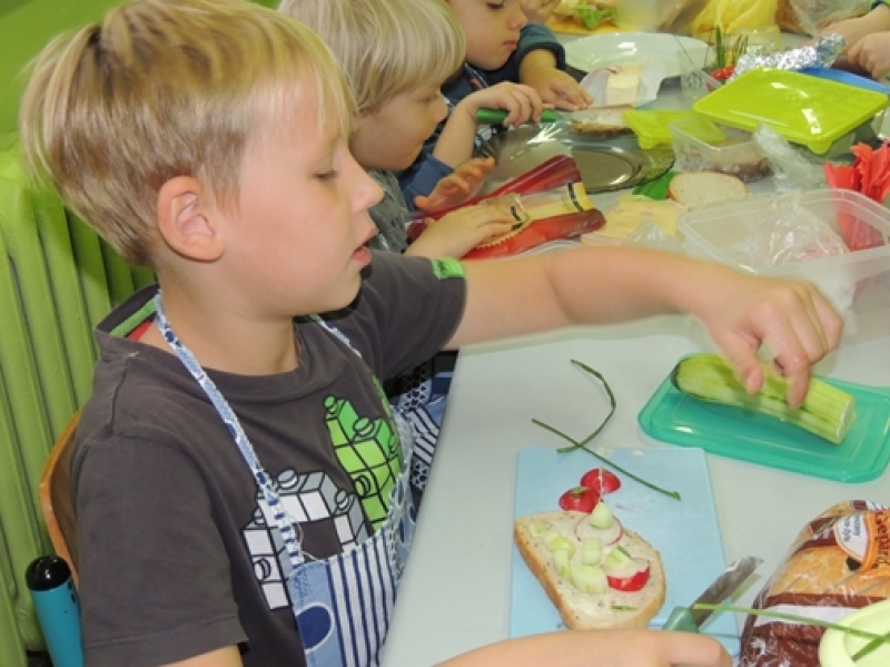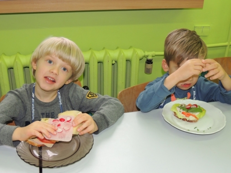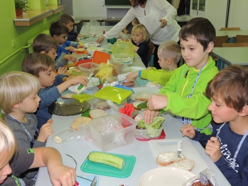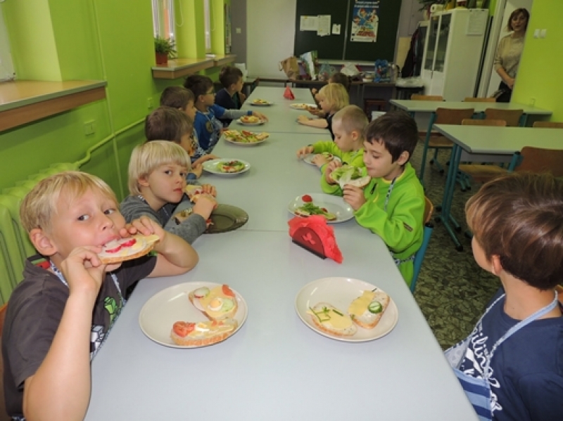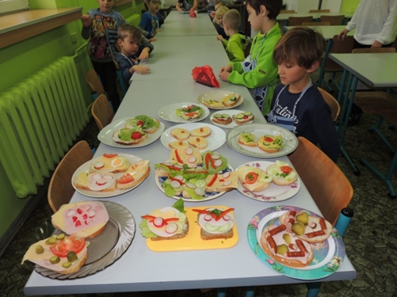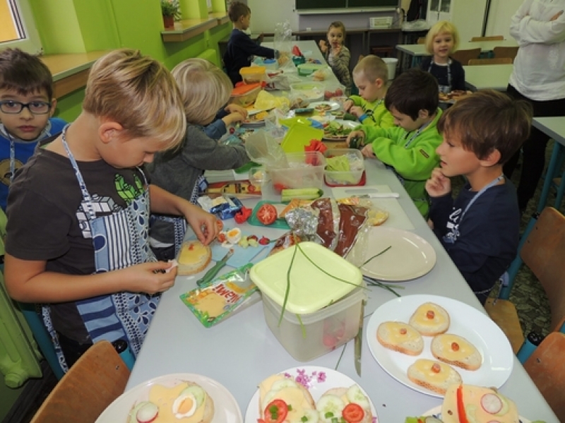 W listopadzie pierwszoklasiści spróbowali swoich sił jako ,,kucharze”, przygotowując zdrowe kanapeczki. Dzieci wykorzystały wiele produktów, a szczególnie warzywa, które odgrywają tak istotną rolę w ich odżywianiu. Zajęcia kulinarne dostarczyły uczniom wiele satysfakcji, a- przede wszystkim – były doskonałą formą podsumowania wiadomości o wartościach odżywczych warzyw. Przyczyniły się też do utrwalenia nawyków dotyczących higieny przygotowywania i kultury spożywania posiłków.