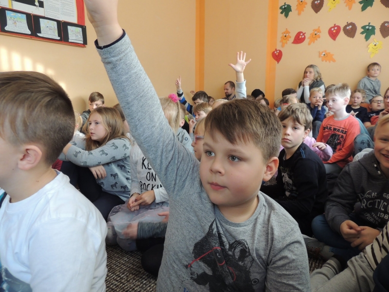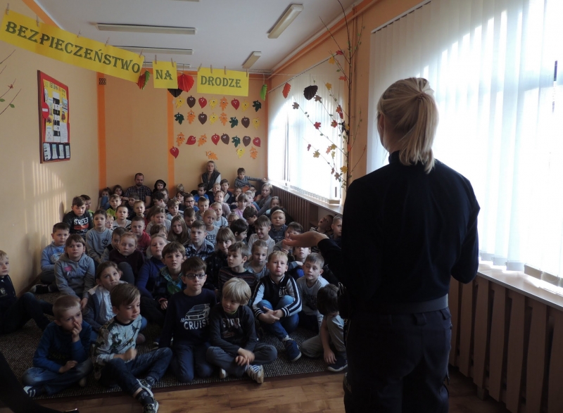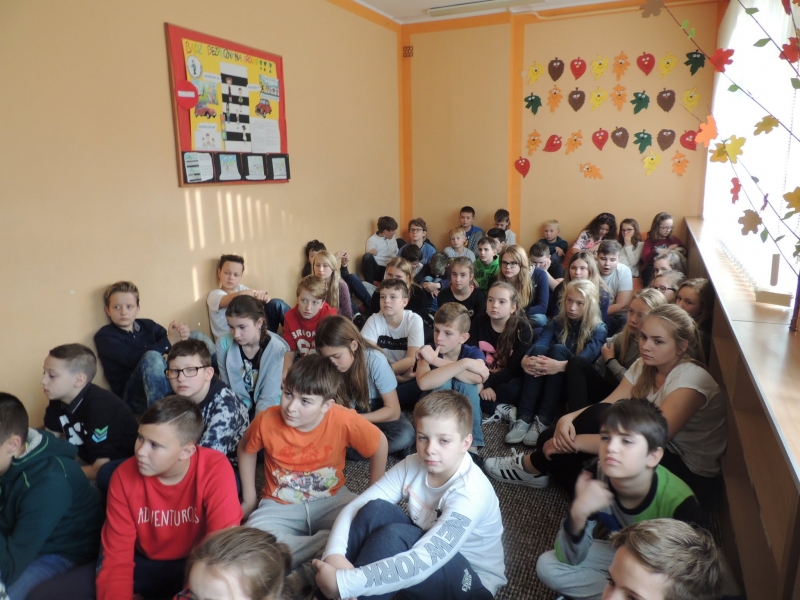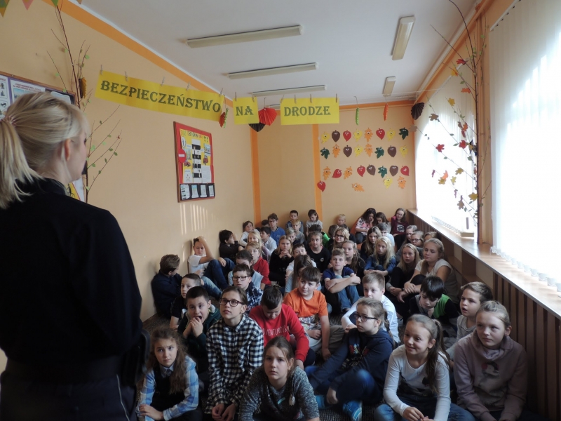 W klasach starszych IV – VI funkcjonariuszka poruszyła ważny temat w dzisiejszym świecie, który dotyka coraz szerszą grupę nastolatków – cyberprzemoc i cyberprzestępczości. Wspomniała także o bezpieczeństwu na drodze. Przedstawiła, jakie są konsekwencje niewłaściwych, niezgodnych z prawem zachowań i odpowiedzialności za czyn. Uczuliła uczniów na pułapki czyhające w sieci (fałszywe konta na portalach społecznościowych, wykorzystywanie wiadomości i zdjęć zamieszczanych na portalach). Uczniowie mieli możliwość zadawania pytań oraz uczestniczenia w dyskusji.