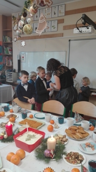 Wielkimi krokami zbliżają się ku nam Święta Bożego Narodzenia. Ten szczególny czas spędziliśmy w szkolnym gronie na śpiewaniu kolęd, pastorałek i piosenek świątecznych. Składaliśmy życzenia stojąc przy wigilijnym stole, ciesząc się blaskiem choinkowych światełek i uśmiechem na twarzach klasowej rodziny.