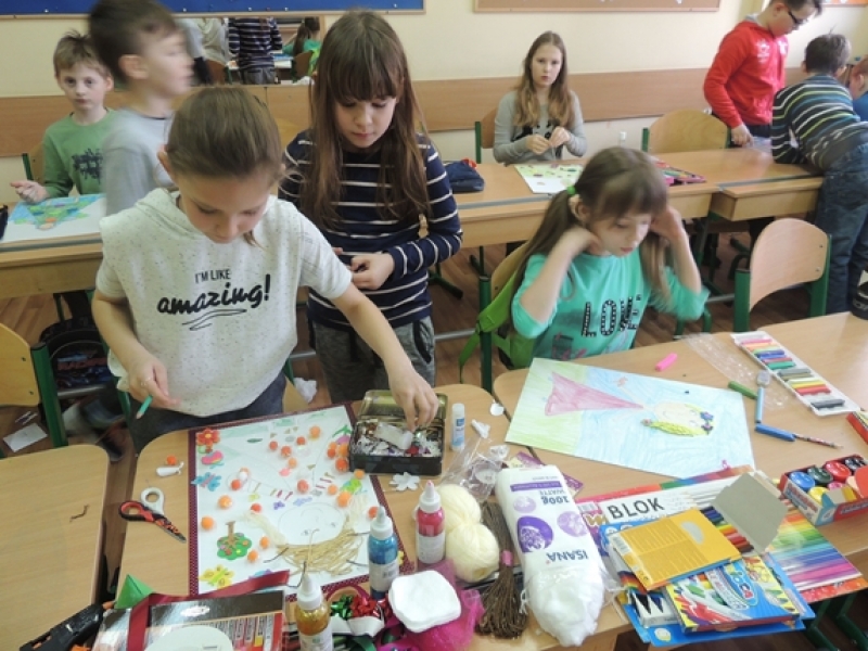 Wszystkie dzieci pracowały z ogromnym zaangażowaniem. Do szkoły przyszły z różnymi pomysłami. Ich trud i wysiłek jaki włożyli w wykonanie pracy został nagrodzony słodkim upominkiem.