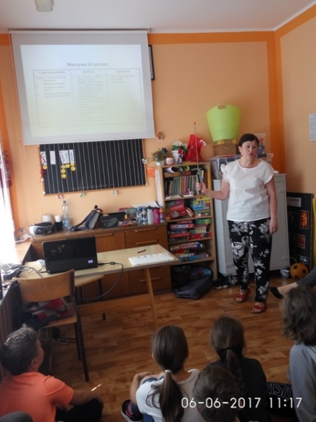 Uczniowie klas IV - VI wzięli dziś udział w zajęciach prowadzonych przez dietetyk, panią Jolantę Kozłowską - specjalistę żywienia i dietetyki.