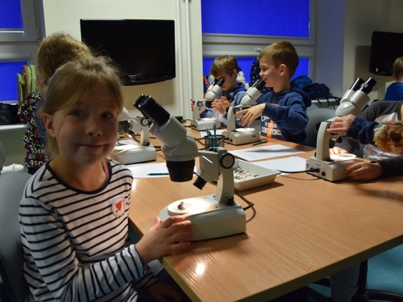 Dnia 16 listopada uczniowie klas drugich brali udział w zajęciach w laboratorium biologicznym Akwarium Gdyńskiego. Tematem prac było „Spotkanie z Morzem Bałtyckim”. Dzieci badały pod mikroskopem bałtyckie małże i krewetki oraz wykonywały szkic muszli. Uczniowie oglądali prezentację dotyczącą fauny i flory Morza Bałtyckiego. Następnie dzieci zwiedzały Oceanarium i dokonały zakupu pamiątek.