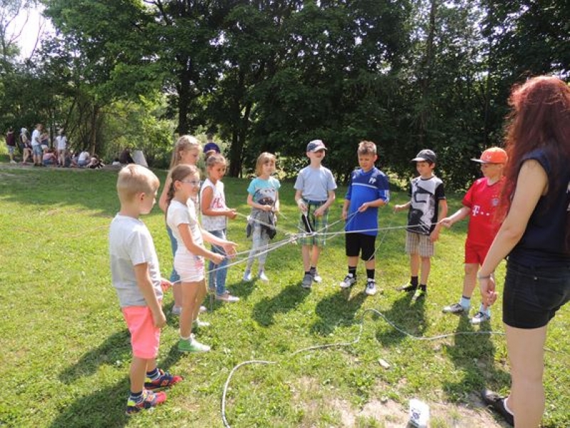 Dzieci aktywnie spędziły czas, po czym wspólnie przy ognisku piekły kiełbaski. Cały dzień spędzony na świeżym powietrzu upłynął w miłej atmosferze.