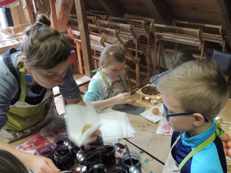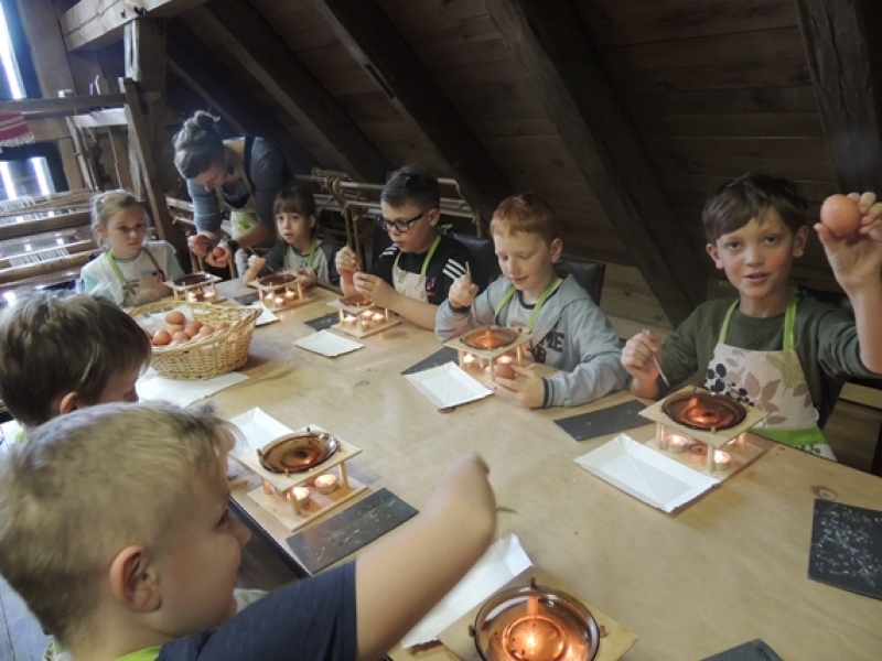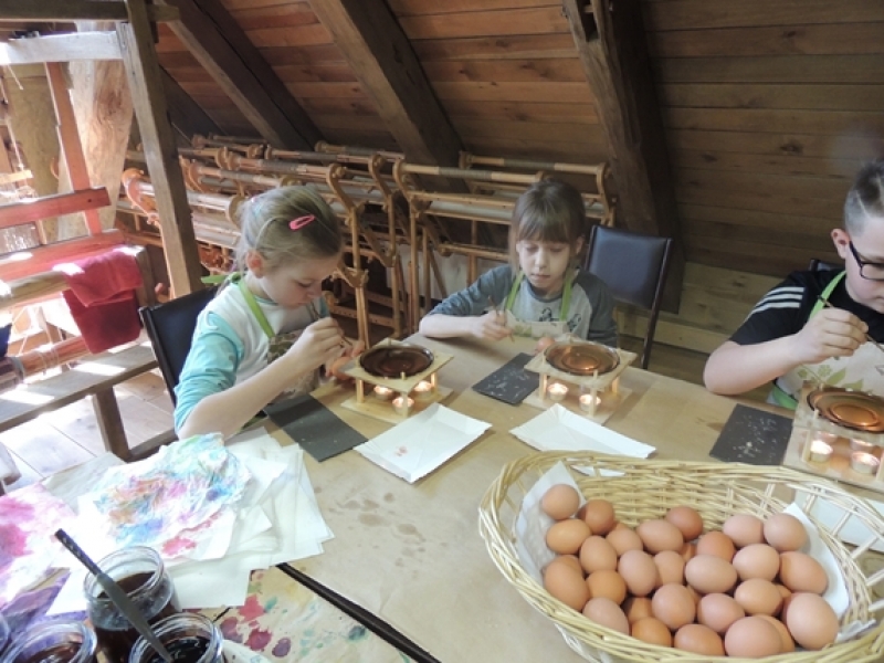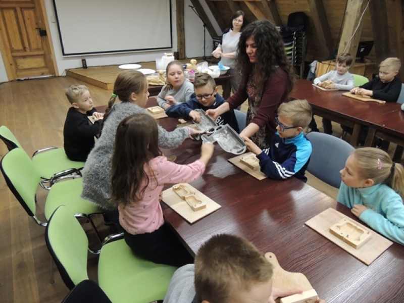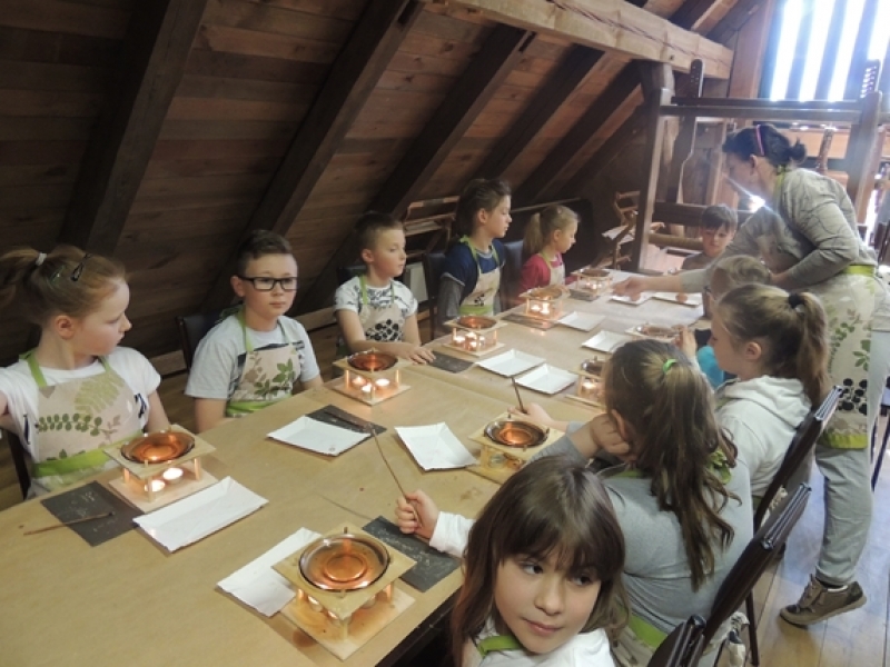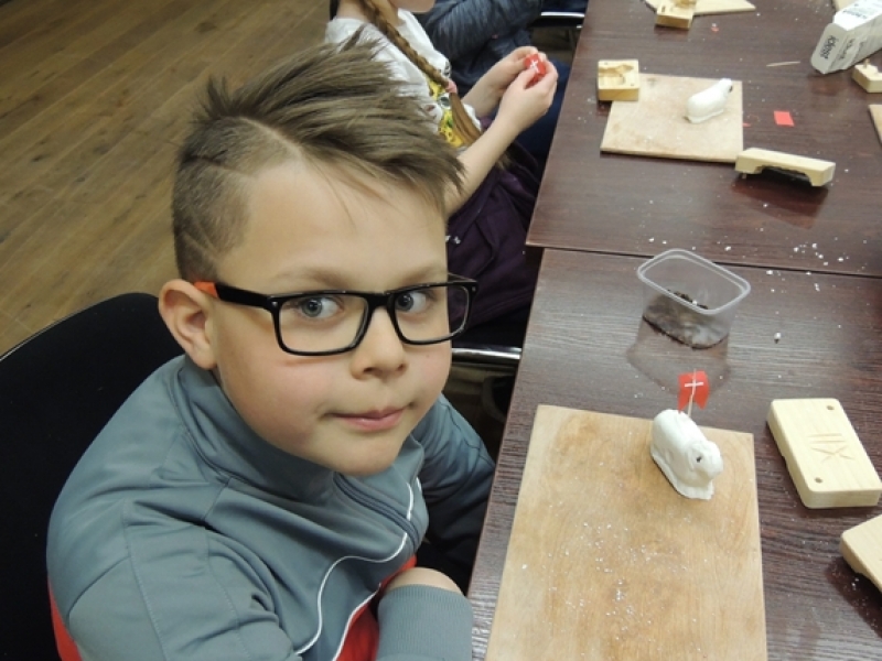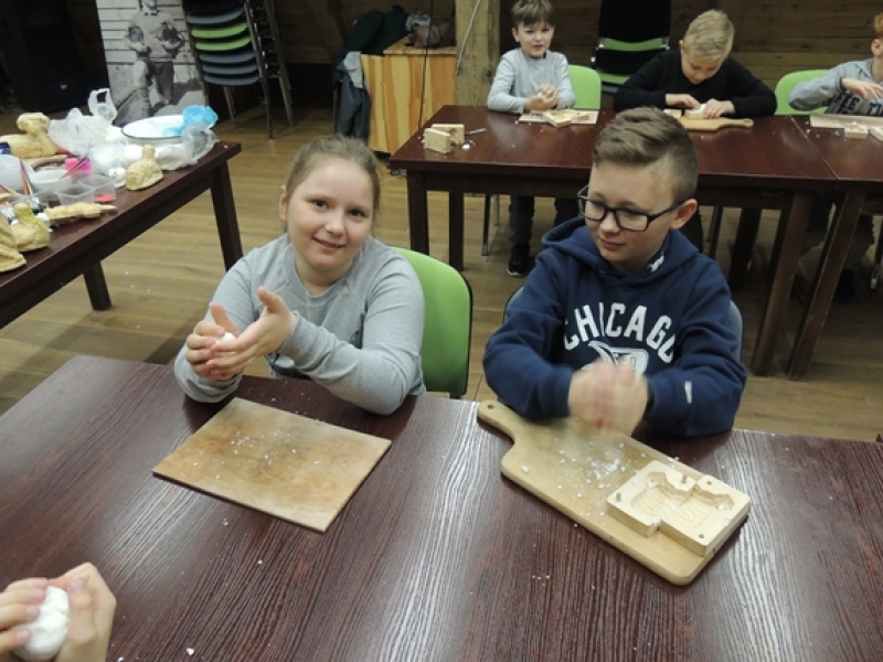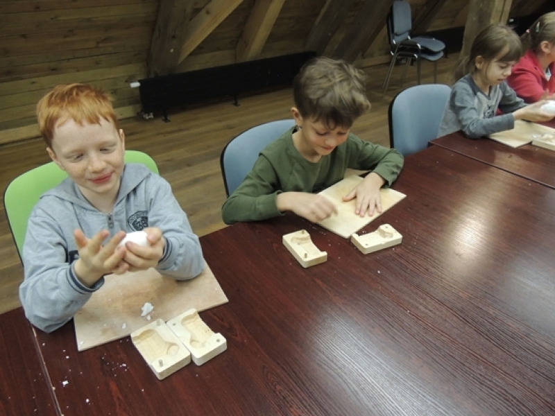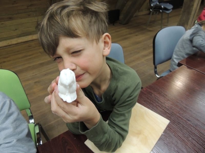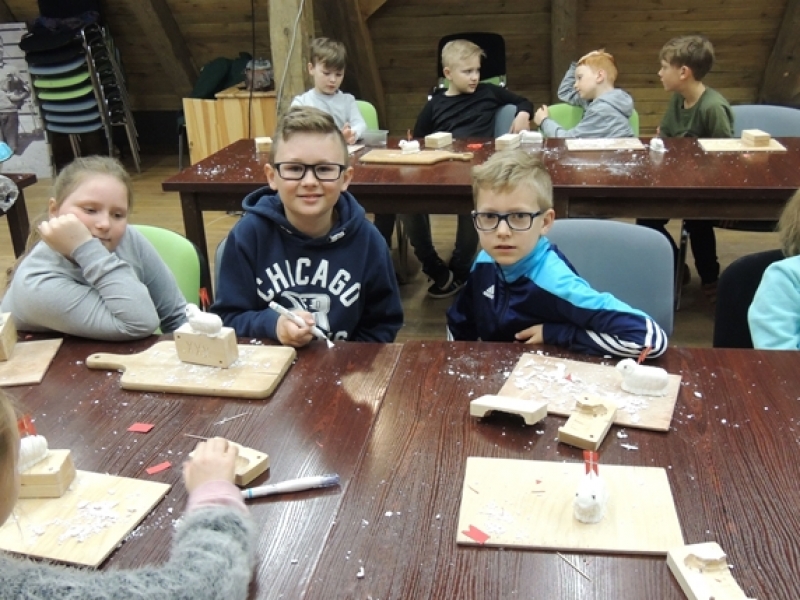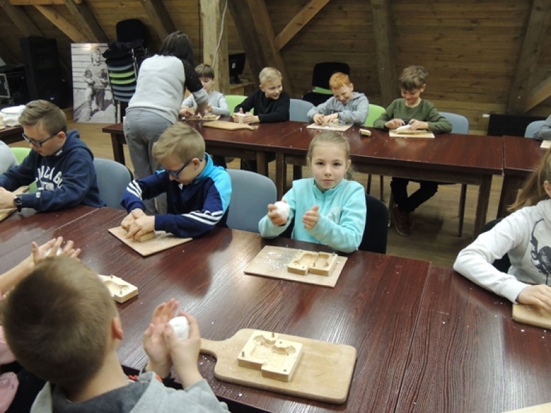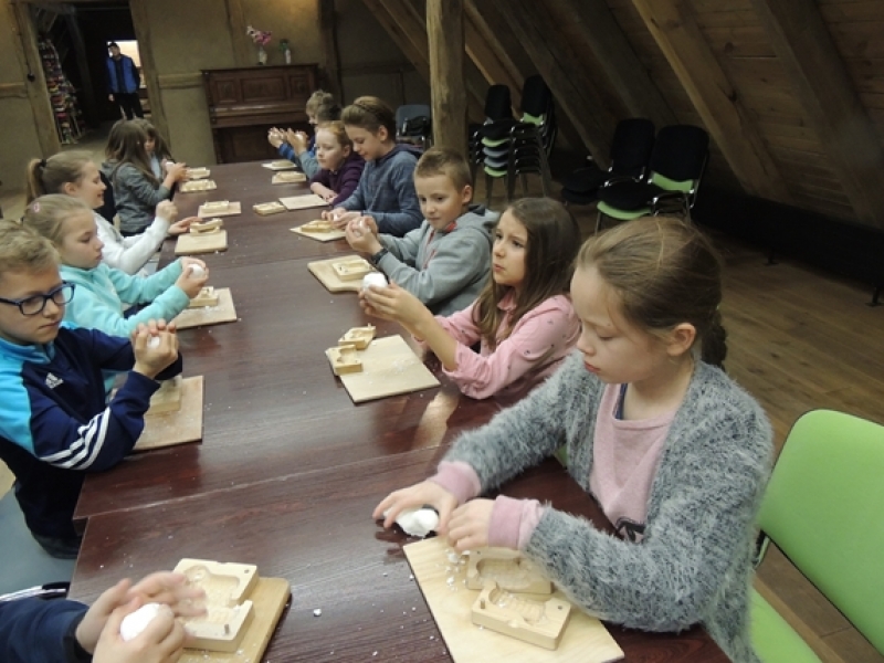 Uczniowie klas trzecich w wiosennym nastroju pojechali do Swołowa. Miejsce to jest nam bardzo dobrze znane. Tym razem poznaliśmy zwyczaje i wierzenia Wielkanocne, które występowały i występują w kulturze kaszubskiej. Nasza przygoda rozpoczęła się od stworzenia własnych cukrowych baranków wielkanocnych, później poznaliśmy z czego korzystali dawni mieszkańcy, aby stworzyć ciekawe i smaczne wyroby cukiernicze. Na koniec wycieczki spróbowaliśmy odkryć tajemnicę jaką skrywa jajko, czyli jaki był początek? Czy z jajka wykluło się pisklę, czy może wyłonił się z niego cały świat....? Po burzliwej dyskusji i wysłuchania ciekawych historii zdradzono nam od początku do końca jak wyczarować pisankę. Dzieci wykorzystały zdobytą wiedzę i wykonały wspaniałe pisanki, które razem z barankiem zabrały do swoich domów. Swołowo to chyba naprawdę zaczarowane miejsce, bo w czasie tej wycieczki mieliśmy wszystkie pory roku, od śniegu, przez deszcz i wiatr, po słońce.
