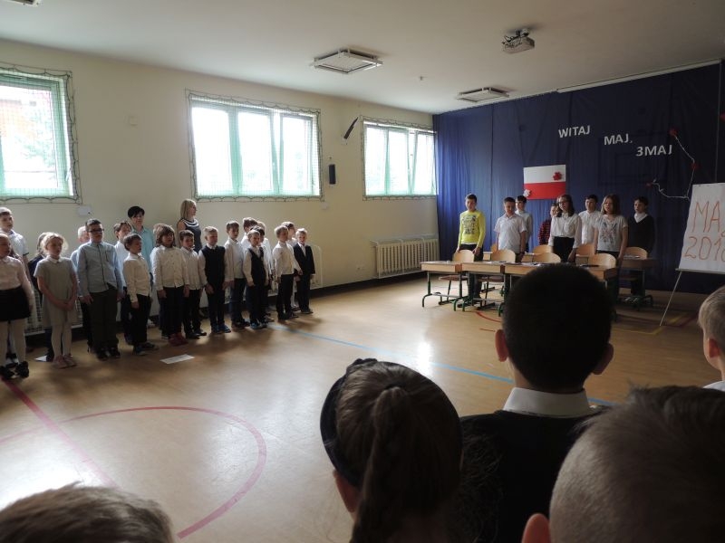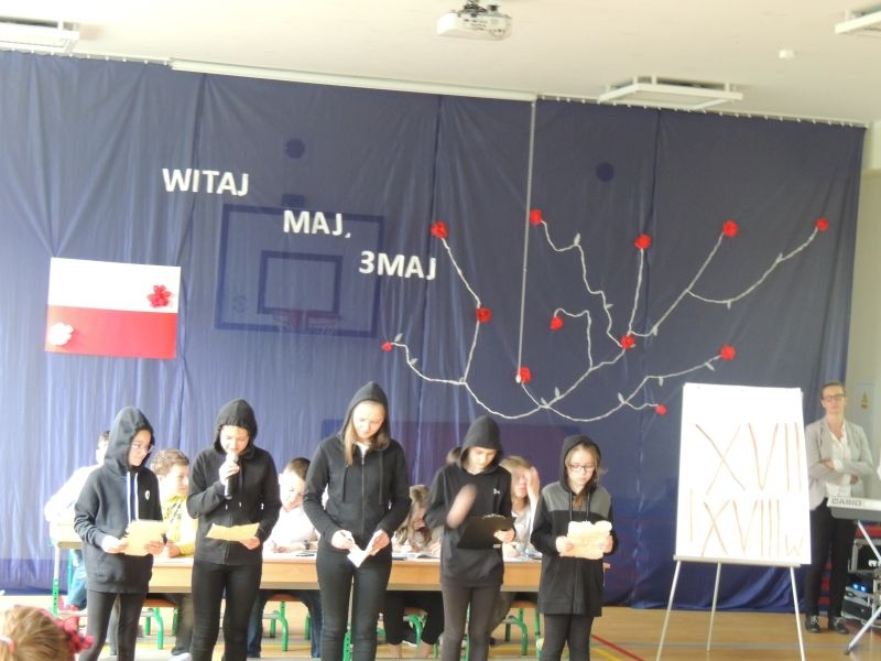 Dnia 26.04.2018r. odbył się uroczysty apel z okazji rocznicy uchwalenia Konstytucji 3 Maja przygotowany przez uczniów klasy V. Dzieci przypomniały ważne postacie historyczne, które brały udział w wydarzeniu orzaz o jego przyczynach i skutkach. Zwróciły również uwagę jak ogromnny wpływ na dalsze losy Polski miał dokument, który był drugą na świecie konstytucją. Apel urozmaicił występ dziewcząt, które przybliżyły sylwetkę króla Stanisława Augusta Poniatowskiego rapując o nim tekst.