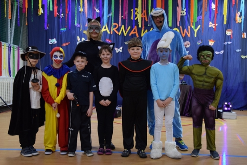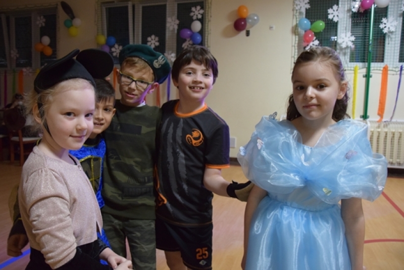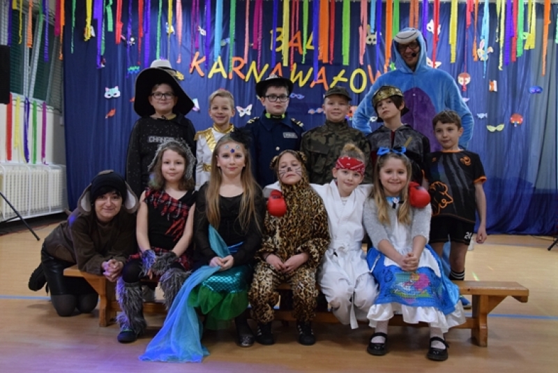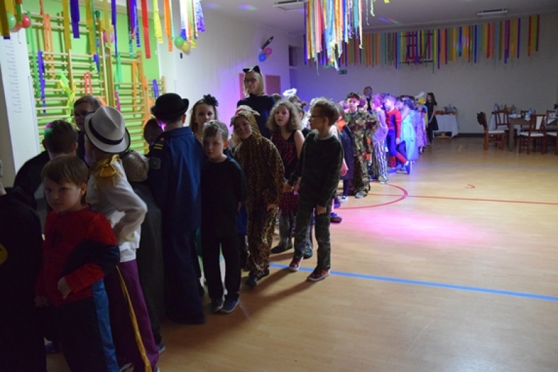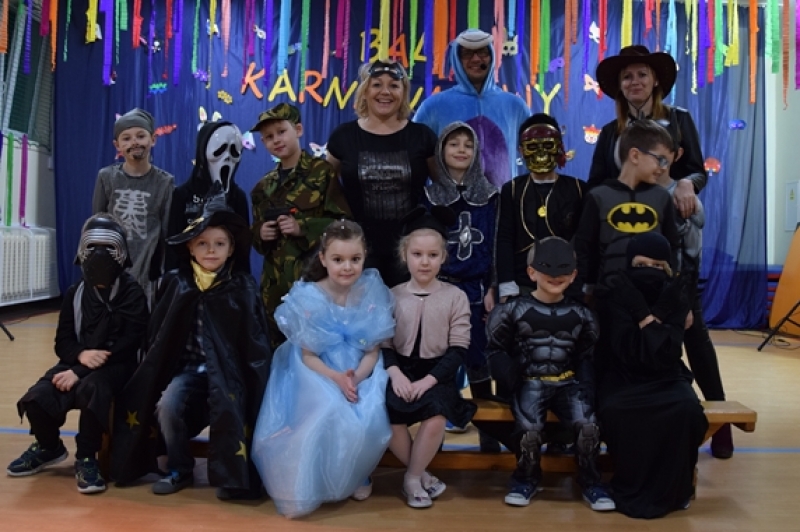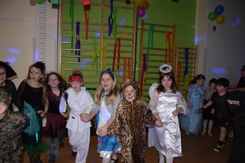 W piątkowe przedpołudnie, 26 stycznia 2018r., odbył się - tak długo oczekiwany przez uczniów kl. I-III SJSP - bal karnawałowy. W tym dniu sala gimnastyczna zamieniła się w zaczarowaną krainę pełną księżniczek, policjantów, kowbojów, duchów, motylków, kotków i innych barwnych postaci z filmów i bajek. Przy dźwiękach skocznej muzyki i utworach znanych wykonawców dzieci mogły pobawić się ze szkolnymi kompanami i swoimi wychowawcami. Rozrywkę uczestnikom balu zapewnił animator – pan Szymon Medalion, który nikomu nie pozwolił się nudzić. Pląsy na parkiecie i wspólne zabawy wyczerpały siły tancerzy. Podczas krótkich przerw dzieci miały czas na poczęstunek przygotowany przez rodziców. Pyszne przekąski i słodkości zregenerowały siły i można było dalej się bawić. Choć wszyscy uczniowie klas I-III wspaniale się bawili i tańcom nie było końca, to czas dobrej zabawy upływał szybko i nadszedł moment rozstania. W tak radosnym nastroju dzieci udały się na dwutygodniowy odpoczynek. Życzymy wszystkim udanych i bezpiecznych ferii!