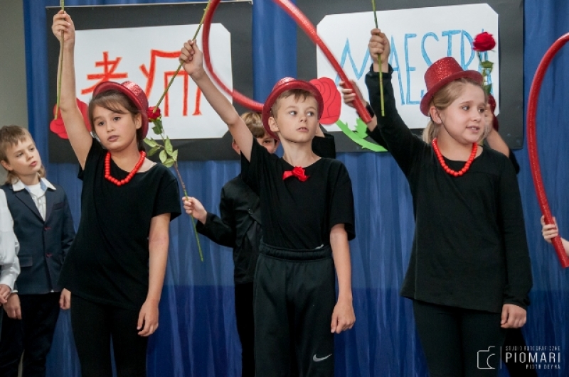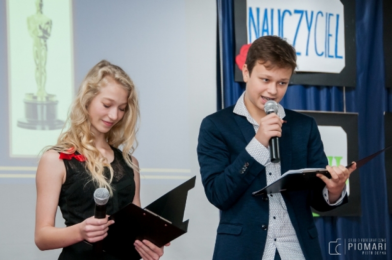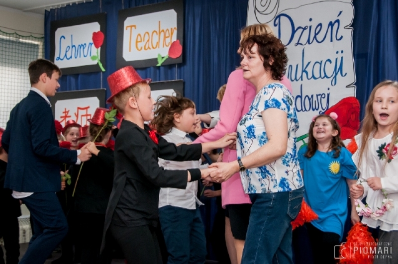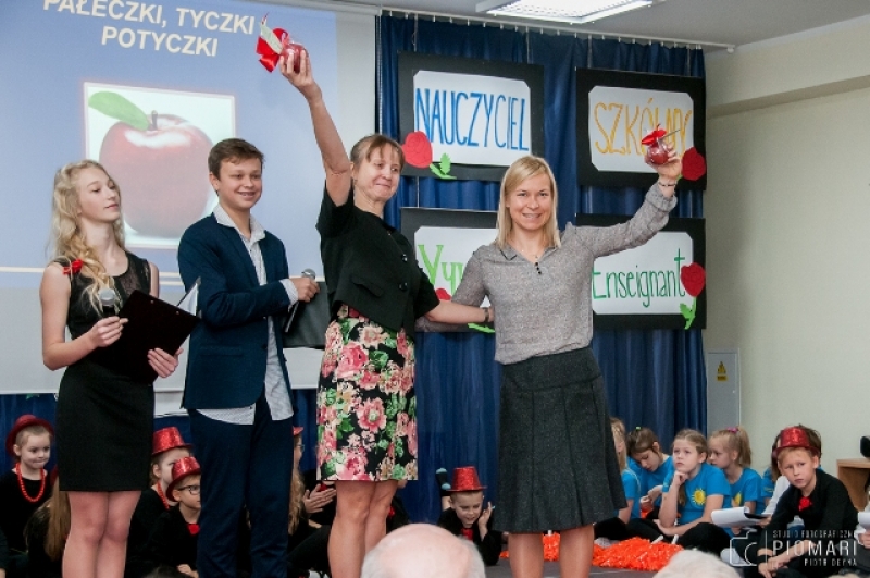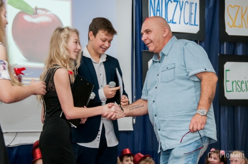 Dzień Edukacji Narodowej to doskonała okazja, aby podziękować nauczycielom i pozostałym pracownikom szkoły za ich pracę i trud włożony w nauczanie i wychowanie. W tym roku uroczystą akademię dla świętujących DEN przygotowali uczniowie klasy II, III a, III b i VII. Na całość złożyły się wiersze, życzenia, piosenki i tańce. Najważniejszą częścią uroczystości była GALA OSKAROWO-JABŁKOWA. Nie zabrakło „czerwonego dywanu”, wspaniałych prowadzących, „jabłkowych statuetek” oraz fanfar! Ta część odświętnego montażu wprowadziła wszystkich w doskonały nastrój. Każdy z nauczycieli oraz pozostałych pracowników naszej szkoły otrzymał nagrodę w specjalnej, jemu dedykowanej, kategorii. Na zakończenie DEN uczniowie spotkali się w klasach ze swoimi Wychowawcami i Nauczycielami, aby przekazać im serdeczne życzenia i wręczyć kwiaty.
