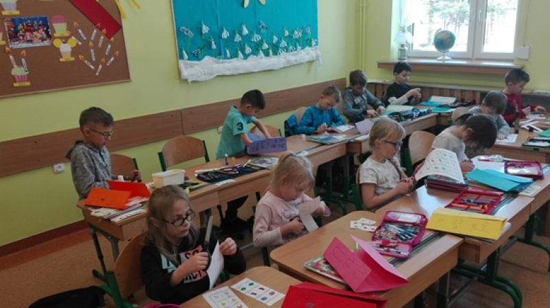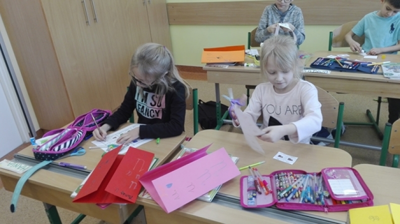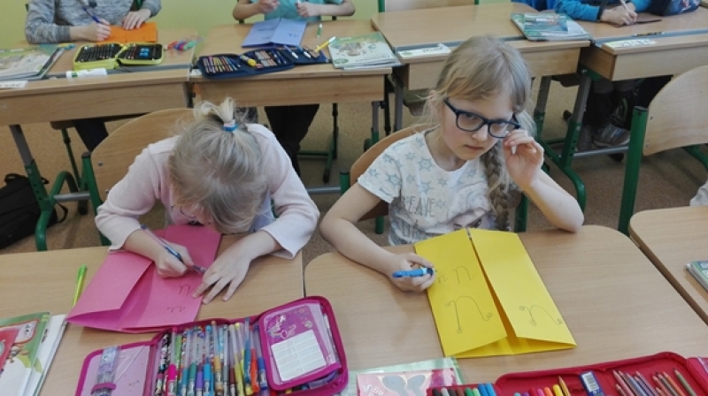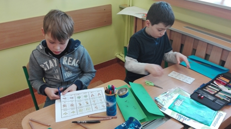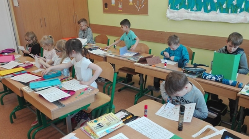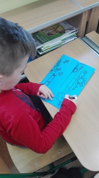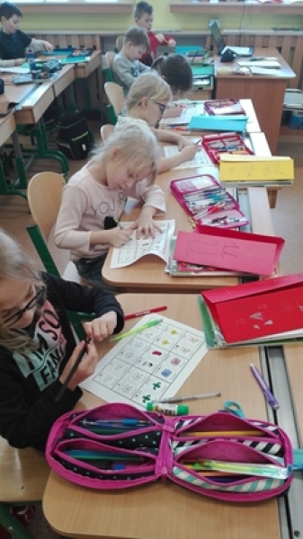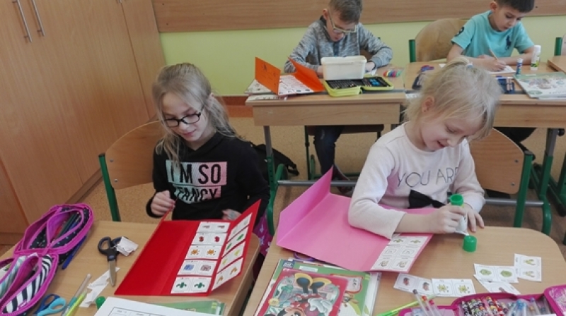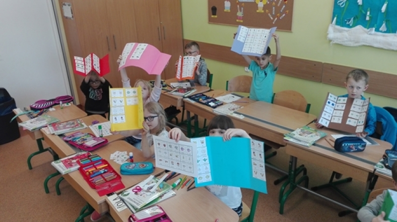 Uczniowie I b stworzyli swoje pierwsze lapbooki. Jest to obrazkowa mapa myśli, na której dzieci umieściły wyrazy z U. Swoim wyglądem przypomina książkę z mnóstwem sekretów i mobilnych elementów. Właśnie te interaktywne elementy są atrakcyjne, sprawiają, że nauka staje się ciekawsza, pełna niespodzianek, zagadek. Dzięki lapbookom możemy rozwijać różne umiejętność jak pisanie, czytanie, logiczne myślenie, kreatywność, uczy również jak organizować sobie pracę i jak wykorzystać wiedzę już zdobytą lub jak skutecznie po nią sięgać. Lapbooki służą do powtórki materiału, jak również do jego pogłębienia. Są kolorowe, przyciągają uwagę i dzieci chętnie do nich wracają. Następne labooki będą z Ó.