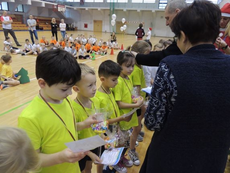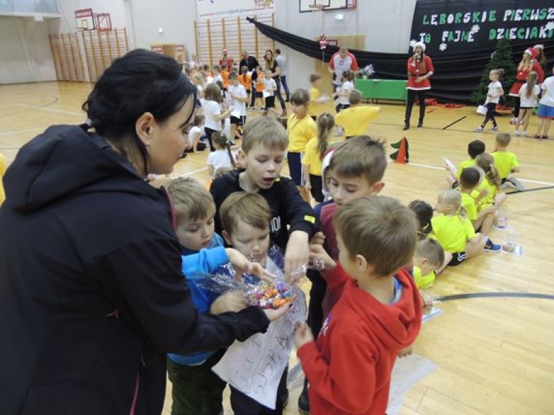 W dniu 07 grudnia uczniowie klas pierwszych wzięli udział w imprezie sportowej pod hasłem Lęborskie pierwszaki to fajne dzieciaki”, która odbyła się w Miejskiej Hali Sportowej w Lęborku. W zawodach rywalizowało 8 lęborskich szkół podstawowych. Naszą szkołę reprezentowało 5 dziewczynek i 5 chłopców. Głównym celem imprezy była integracja dzieci z różnych szkół i umiejętność rywalizacji Fair play, ale przede wszystkim wspólna zabawa. Braliśmy udział w pięciu konkurencjach,w których dzieci z całych sił starały się być najlepsze i najszybsze. I udało się! Zajęliśmy II miejsce. Ciężka praca i treningi na lekcjach W-f`u opłaciły się. Każdy z uczniów za udział w zawodach dostał medal, dyplom i słodycze.