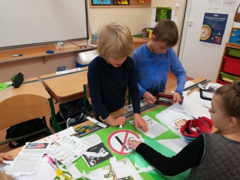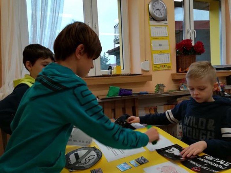 Podczas zajęć kółka przyrodniczego uczniowie klasy IV a, IV b i VI a przygotowywali materiały na gazetkę szkolną „Nie pal przy mnie proszę”.