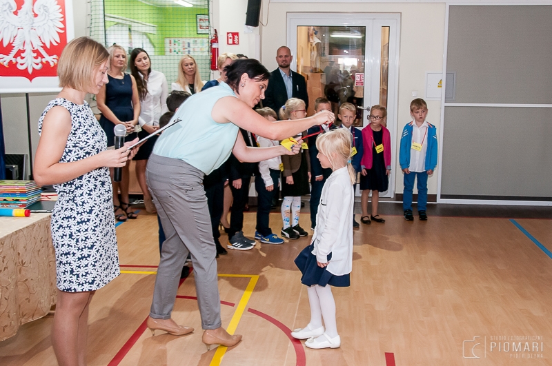 4 września to szczególny dzień dla naszych najmłodszych uczniów, którzy w uroczysty sposób zostali włączeni do społeczności uczniowskiej Społecznej Językowej Szkoły Podstawowej LTO im. Krzysztofa Kolumba w Lęborku. Uczniowie klas pierwszych wraz z opiekunami zostali uroczyście przywitani przez Panią Dyrektor, następnie zostali przedstawieni wychowawcy klas, oraz nauczyciele, którzy także będą uczyć w klasach Ia i Ib. Później panie wychowawczynie odczytały imiona i nazwiska uczniów. Po chwili odbyło się ŚLUBOWANIE; dziewczynki i chłopcy podnieśli prawe ręce i uroczyście ślubowali być dobrym i uczciwym, strzec honoru i dobrego imienia Szkoły, szanować swoich nauczycieli i rodziców, uczyć się tego co piękne,kochać swoją Ojczyznę. Następnie Pani Dyrektor pasowała każde dziecko na ucznia, dzieci na pamiątkę otrzymały dyplomy i książki. Po tych emocjonujących chwilach nastąpił czas zabawy - wszyscy razem: dzieci, rodzice i wychowawcy tańczyli Kaczuszki i Tańczymy labada. Uśmiechów i mnóstwa pozytywnej energii było ponad miarę. Na koniec uczniowie klas pierwszych zostali zaproszeni do swoich sal, gdzie w najbliższych latach będą wspólnie spędzać czas. Pierwszym zadaniem uczniów w klasie było wykonanie wizytówek na swoje biurka, każda z nich jest inna i piękn. Atmosfera jaka panowała była pełna dziecięcych uśmiechów.