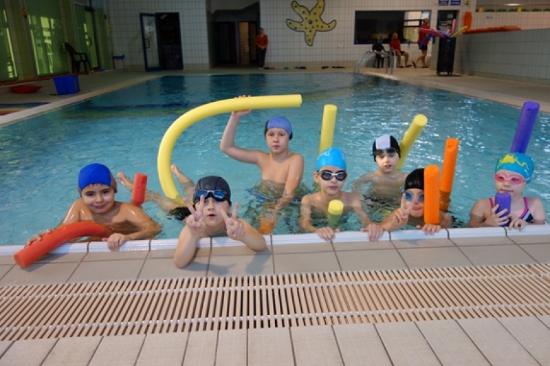 15 grudnia uczniowie klas I-III zakończyli cykl zajęć wychowania fizycznego, realizowanych w tym roku szkolnym na basenie. Od września dzieci uczyły się i doskonaliły różne elementy pływania. Najmłodsi oswajali się z wodą, ucząc się m. in. zanurzania głowy i wydechu do wody, ćwiczeń wypornościowych, pracy nóg do kraula i grzbietu. Starsi doskonalili zdobyte wcześniej umiejętności i uczyli się dokładanek do stylu dowolnego i grzbietowego. Wszyscy uczniowie poczynili ogromne postępy.