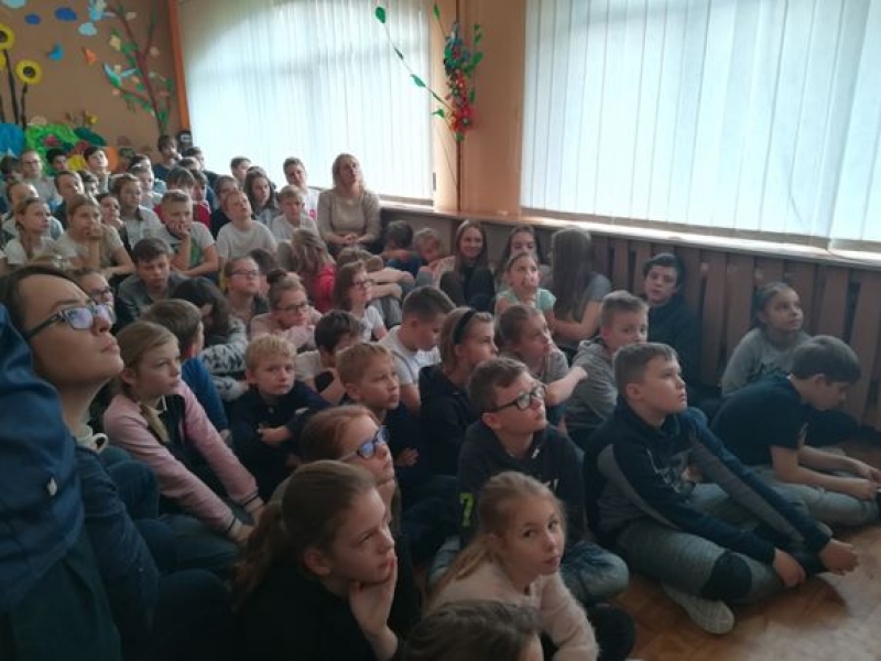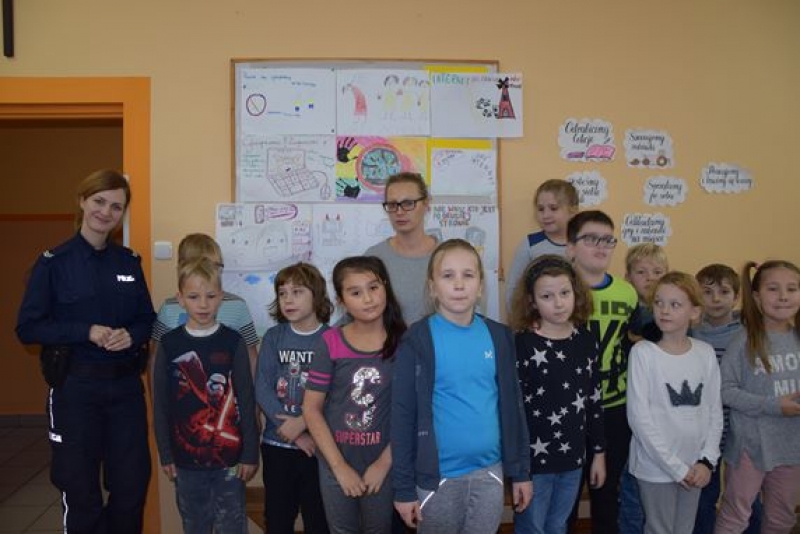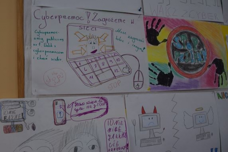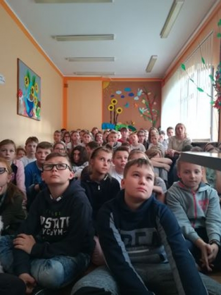 W klasach starszych IV – VII został zaprezentowany film na temat umieszczania zdjęć i ważnych informacji na portalach społecznościowych. Celem tego pokazu było ukazanie konsekwencji niewłaściwych decyzji. Funkcjonariuszka podczas spotkania poruszyła ważny temat w dzisiejszym świecie, który wpływa na jakość życia nastolatków i ich rozwój: cyberprzemoc i cyberprzestępczości, jak również dopalacze. Uczuliła uczniów jak powinni się zachowywać poruszając się w Internecie. Uzmysłowiła, co grozi za dokuczanie i nękanie poprzez wypisywanie obraźliwych i upokarzających wiadomości i komentarzy. Przedstawiła jakie są konsekwencje niewłaściwych, niezgodnych z prawem zachowań i odpowiedzialności za czyn. Uczuliła uczniów na pułapki czyhające w sieci, takie jak: wykorzystywanie danych, fałszywe konta na portalach społecznościowych, wykorzystywanie wiadomości i zdjęć zamieszczanych w Internecie. Uczniowie mieli możliwość zadawania pytań oraz uczestniczenia w dyskusji. Na prośbę wychowawców, jak również duże zainteresowanie uczniów zaplanowano kolejne spotkanie z przedstawicielem policji w najbliższym czasie.