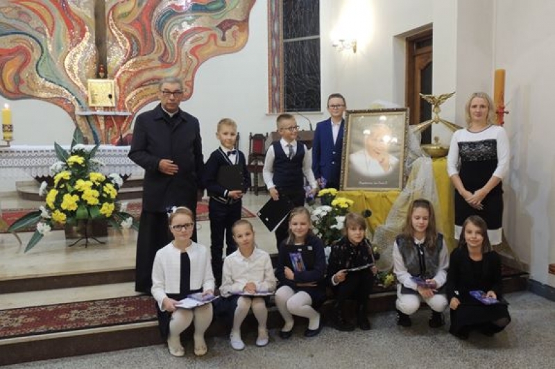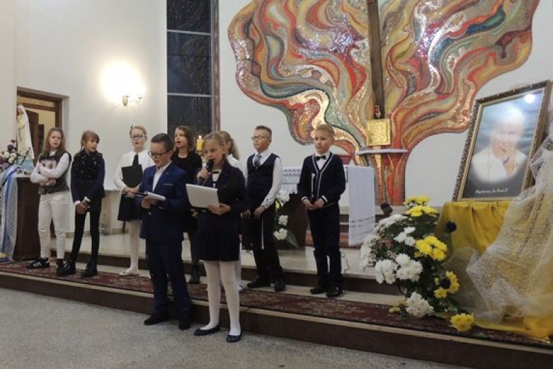 Dzieci z klasy IV B wzięły udział w montażu słowno-muzycznym w kościele pw. Św. Maksymiliana Marii Kolbego na zaproszenie ks. proboszcza Henryka Kreft z okazji Dnia Papieskiego w Tygodniu Kultury Chrzescijanskiej.