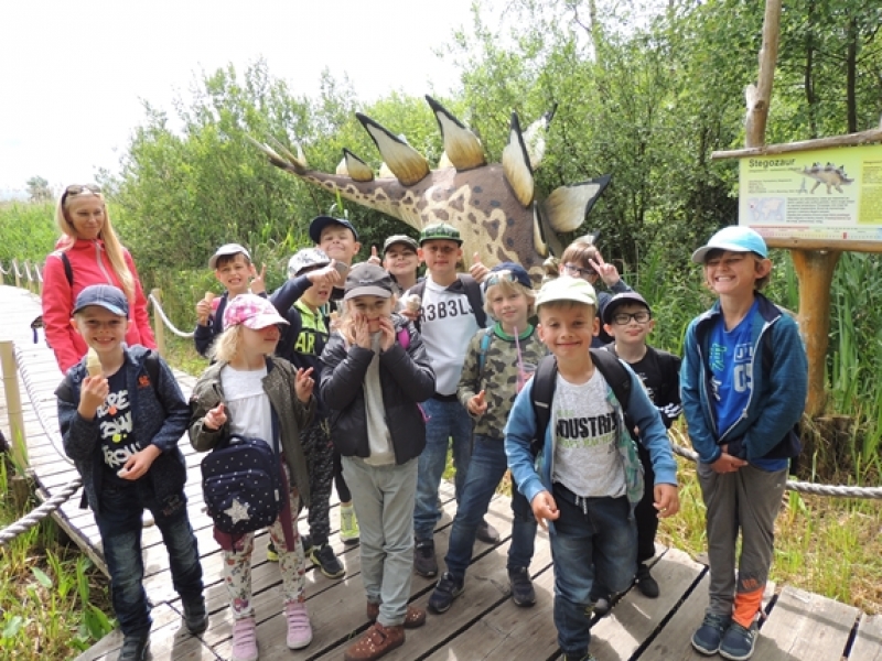 11 czerwca 2018 r. klasa druga spędziła cały dzień w Nowęcinie. Dzieci zakwaterowały się w Ośrodku Wczasowym „Janina”, gdzie już na początku miały okazję skorzystać z basenu. Pływanie pod czujnym okiem ratownika było dla nich nie lada frajdą. Potem były wspólne gry i zabawy ruchowe na placu zabaw. A tuż po pysznym obiedzie wybrali się oni do Łeba Parku na spotkanie z …dinozaurami. To była naprawdę super przygoda! Po powrocie czekała już na nich kolacja w formie „szwedzkiego stołu”. Trzeba przyznać, że, dla każdego było tu coś dobrego”. Takiej wycieczki drugoklasiści na pewno długo nie zapomną…