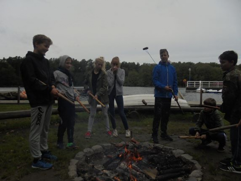 W przerwie pomiędzy zadaniami uczniowie przy ognisku upiekli sobie kiełbaskę oraz rozgrzali się gorącą herbatą.