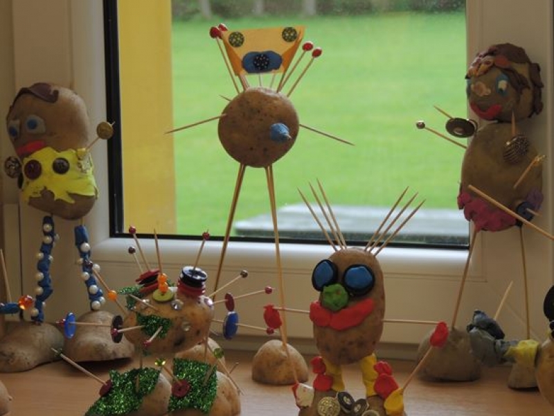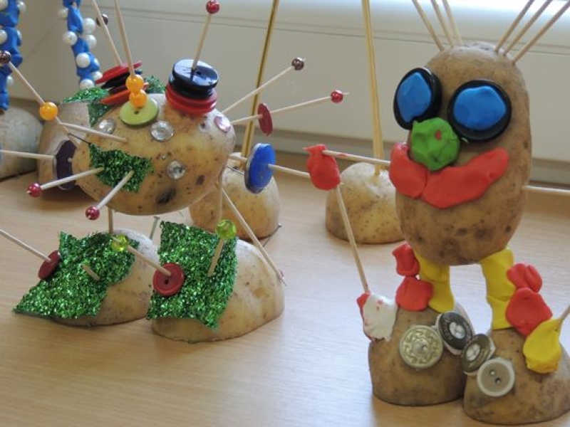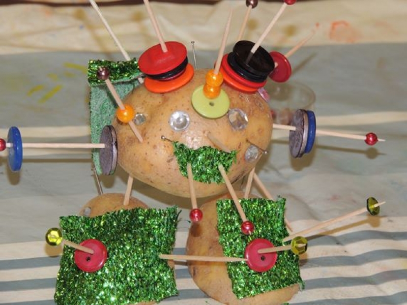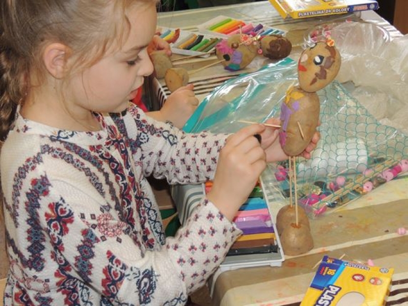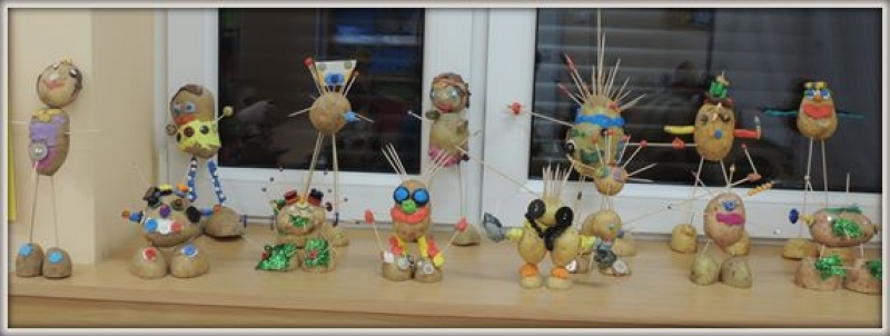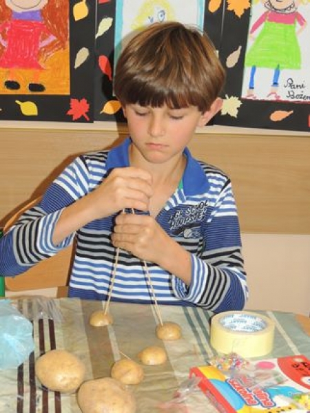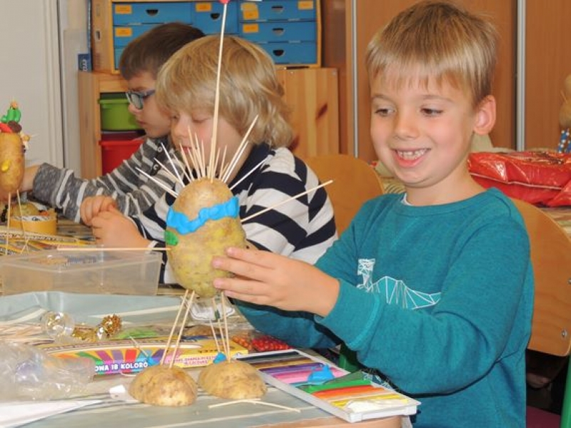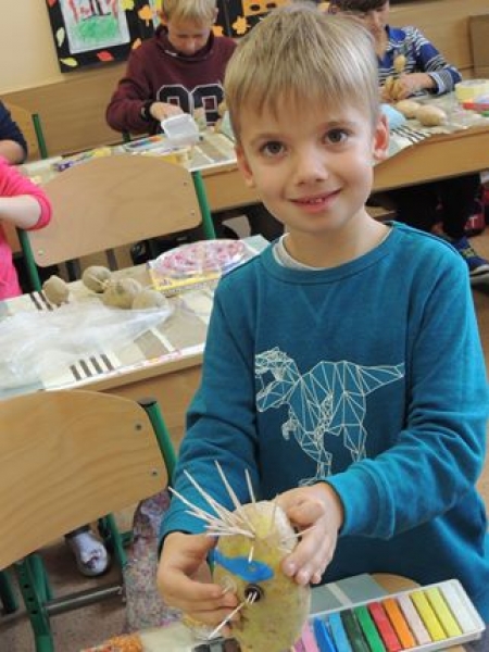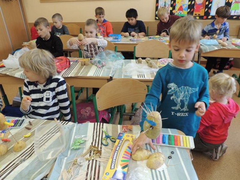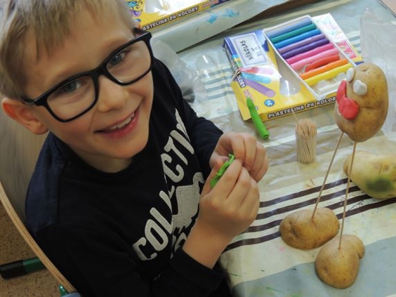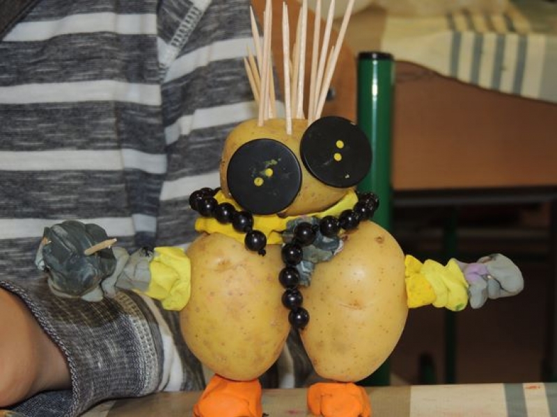 Uczniowie klasy drugiej uczestniczyli w ciekawych zajęciach technicznych. Dzieci miały okazję wykonać pomysłowe figurki z ziemniaków z wykorzystaniem takich materiałów, jak: kolorowy papier, koraliki, guziki, wykałaczki, plastelina, bibuła, itp. Drugoklasiści pracowali z wielkim zapałem, wykazując się wyobraźnią twórczą i kreatywnością w wykonywaniu ,,ziemniaczanego króla”. Efekty ich pracy prezentowały się bardzo ciekawie na klasowej wystawce.