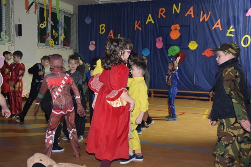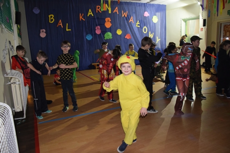 8 lutego 2019 r. odbył się bal karnawałowy w naszej szkole. W tym dniu uczniowie przebrali się w wymarzone stroje swoich bohaterów. Przy dźwiękach skocznej muzyki i utworach znanych wykonawców dzieci mogły pobawić się. Rozrywkę uczestnikom balu zapewnili animatorzy, w postaci tańców, dmuchania balonów i waty cukrowej. Pląsy na parkiecie i wspólne zabawy wyczerpały siły tancerzy. Podczas krótkich przerw dzieci miały czas na poczęstunek przygotowany przez rodziców. Pyszne przekąski i słodkości zregenerowały siły i można było dalej się bawić. Dodatkową atrakcją była zamówiona przez szkołę foto budka, z której cudowne zdjęcia trafiały do rąk dzieci. W wyśmienitym nastroju dzieci udały się na dwutygodniowy odpoczynek. Życzymy wszystkim udanych i bezpiecznych ferii!