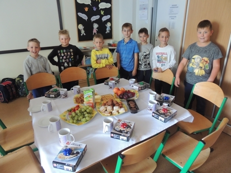 W ubiegłym tygodniu wszyscy Panowie obchodzili swoje święto. Z tej okazji na chłopców naszej klasy czekały już upominki. Dodatkowo dziewczynki przygotowały słodki poczęstunek dla swoich kolegów. Wszyscy razem świetnie się bawili, a przede wszystkim chłopcy byli szczęśliwi.