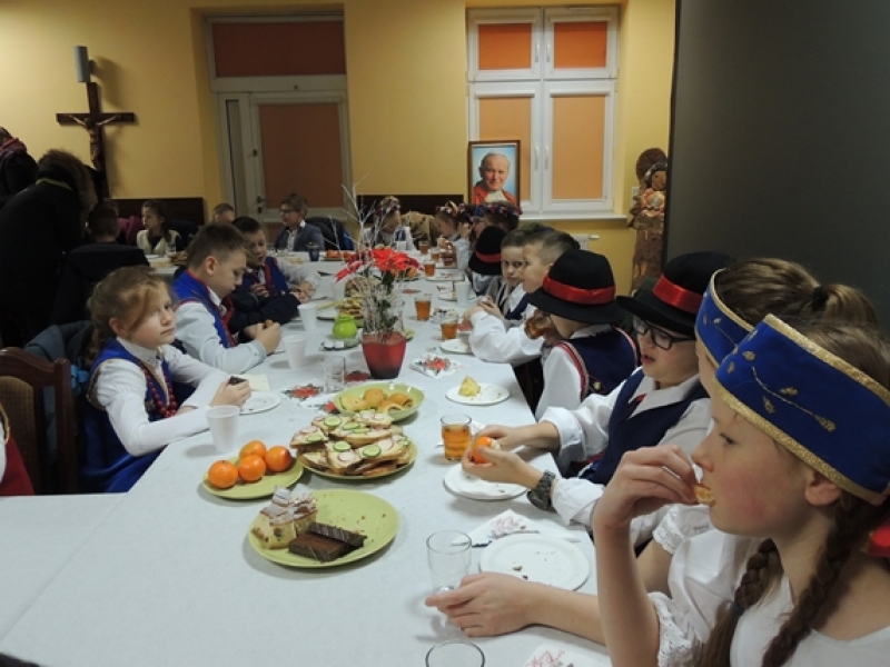 W niedzielę, 20 stycznia 2019 r., w Sanktuarium św.Jakuba Apostoła w Lęborku odbył się III Lęborski Przegląd Kolęd Kaszubskich im. Franciszka Okunia pod patronatem Burmistrza Miasta Lęborka oraz Starosty Powiatu Lęborskiego. Naszą szkołę reprezentował w tym przeglądzie zespół ,,Lęborskie Słoneczka” oraz chętni uczniowie z klas I-V. Grupa pięknie wykonała dwie kolędy kaszubskie: ,,Pastuszkówie w polu spalë” i ,,Czemü ptôchë dzys spiéwają”. Po występie na dzieci czekał poczęstunek. Na zakończenie wszyscy uczestnicy przeglądu wspólnie zaśpiewali kolędę ,,Spiéwta ptôszczi”.