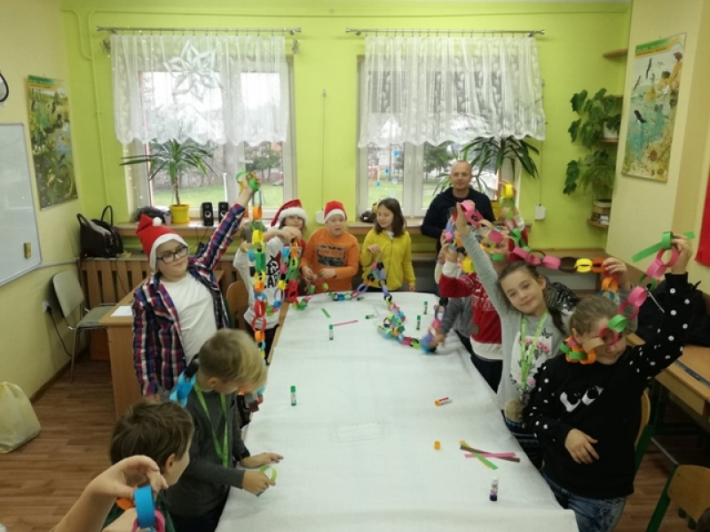 W Mikołajki 6.12.2018r. Klasa IV A była bardzo zapracowana. Uczniowie niczym elfy- mali pomocnicy św. Mikołaja - uwijali się przygotowując piękne torebki na prezenty, które zostaną wystawione na sprzedaż podczas Kiermaszu Bożonarodzeniowego. Ponadto próbowaliśmy pobić rekord Guinnessa na najdłuższy łańcuch choinkowy, który pięknie ozdobił naszą salę. W radosnym duchu Świąt rozpoczęło się kolędowanie, a p. Kathrin Erni opowiedziała dzieciom o tradycjach świątecznych w Szwajcarii i innych krajach. Na koniec klasę odwiedził sam Mikołaj, który tym razem przybył ze… Szwajcarii(!) Jednak na upominki od Świętego dzieci musiały dodatkowo zapracować - śpiewem lub ćwiczeniami fizycznymi. Zdecydowana większość uczniów klasy IVA postawiła na sport wykazując się przy tym wspaniałą kondycją i sprawnością fizyczną ;)