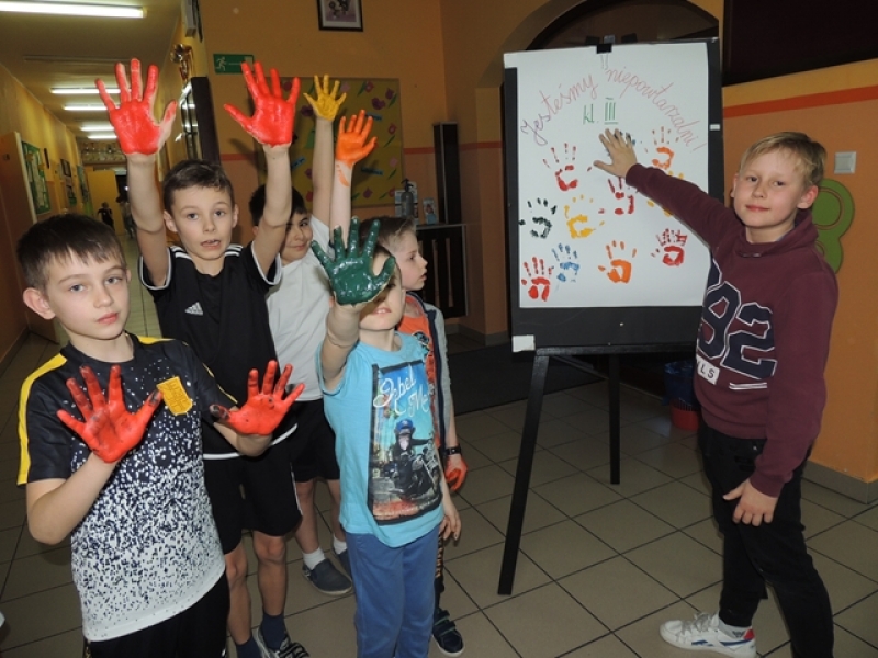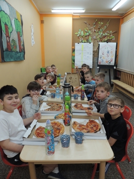 26 marca 2019 r. uczniowie klasy trzeciej uczestniczyli w imprezie o charakterze edukacyjno-integracyjnej pod hasłem ,,Nasza zgrana klasa”, trwającej od g.18.00 do 22.00. Na całość imprezy składały się: wykonanie portretu klasowego z odbitek dłoni ,,Jesteśmy niepowtarzalni”, uzupełnienie planszy z życzeniami do ,,złotej rybki”, wspólne rozwiązywanie klasowej krzyżówki ,,To właśnie my – kl. III” , degustacja pizzy, klasowe rozgrywki koszykarskie i podchody zespołowe. Dodatkową atrakcją zajęć wieczornych był aktywny współudział rodziców w końcowej części imprezy. Wiele emocji dostarczył wspólny mecz w ,,Dwa ognie usportowione” oraz współzawodnictwo w grupach polegające na rozwiązywaniu haseł na czas. Elementem kończącym była autorska wersja bajki ,,Królewna Śnieżka” czytana z podziałem na role z uwzględnieniem zabawnych gestów i odgłosów. Uczestnicy ,,Północki” wychodzili ze szkoły zmęczeni, ale jednocześnie bardzo zadowoleni i zrelaksowani. Wychowawca składa szczere podziękowania rodzicom za osobiste zaangażowanie w imprezę.