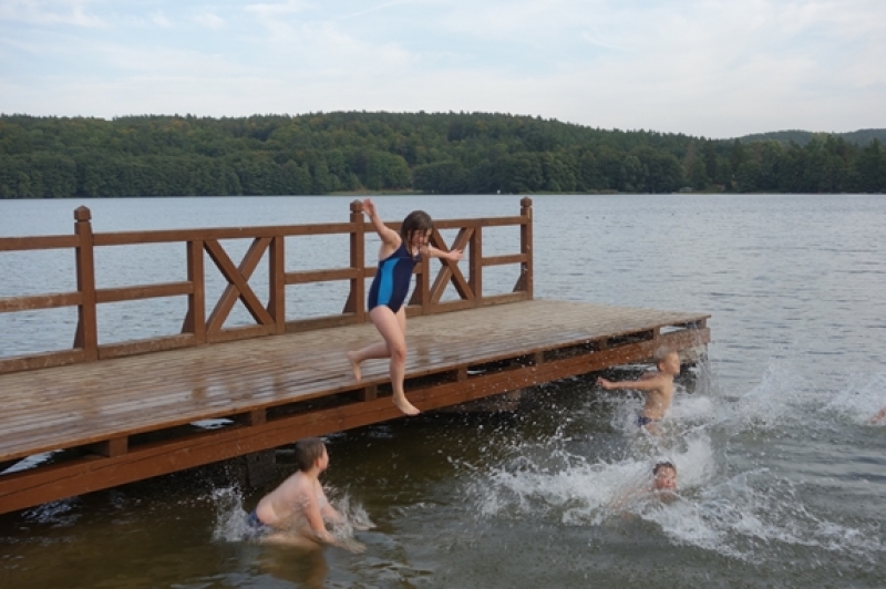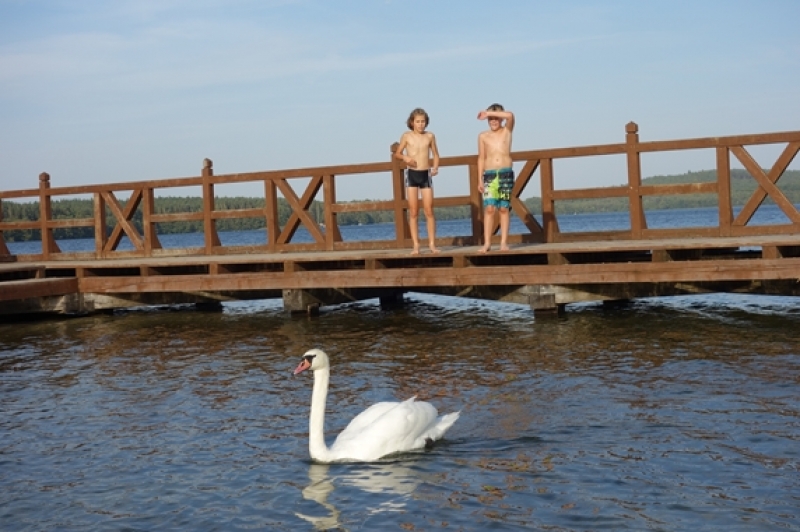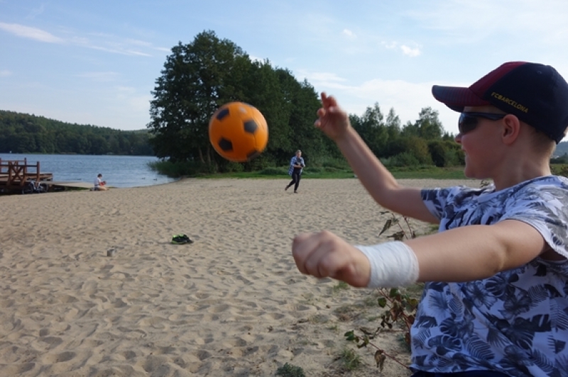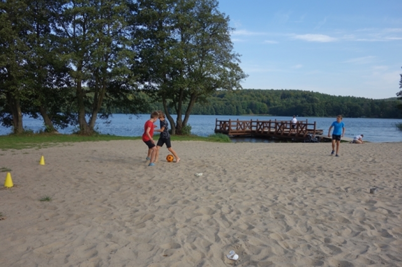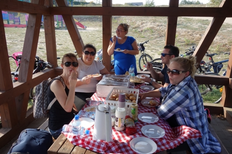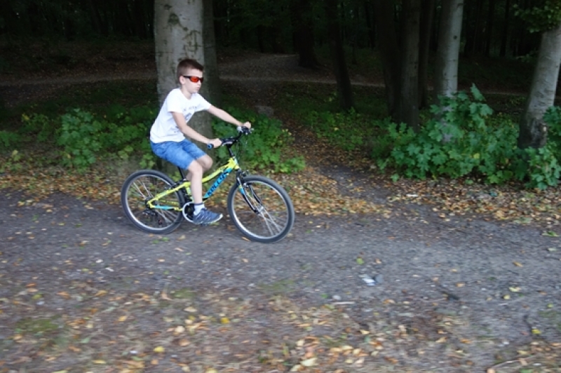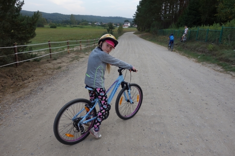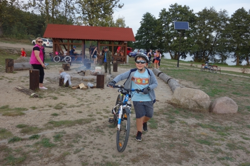W piątek, 21 września, po południu uczniowie klasy IV b przybyli pod szkołę jeszcze raz. Zamiast plecaka z książkami musieli zabrać ze sobą rower oraz mamę lub/i tatę, wychowawcę no i oczywiście dobry humor, niezbędny do tego, aby wyjazd integracyjny był udany. Trasa wiodła przez Mosty i Lubowidz nad Jezioro Lubowidzkie, gdzie na rowerzystów czekało już rozpalone ognisko, kiełbaski i słodki poczęstunek - przygotowane przez rodziców. Pogoda dopisała. Można więc było pograć w piłkę, pobawić się na palcu zabaw, a nawet pokąpać w jeziorze.