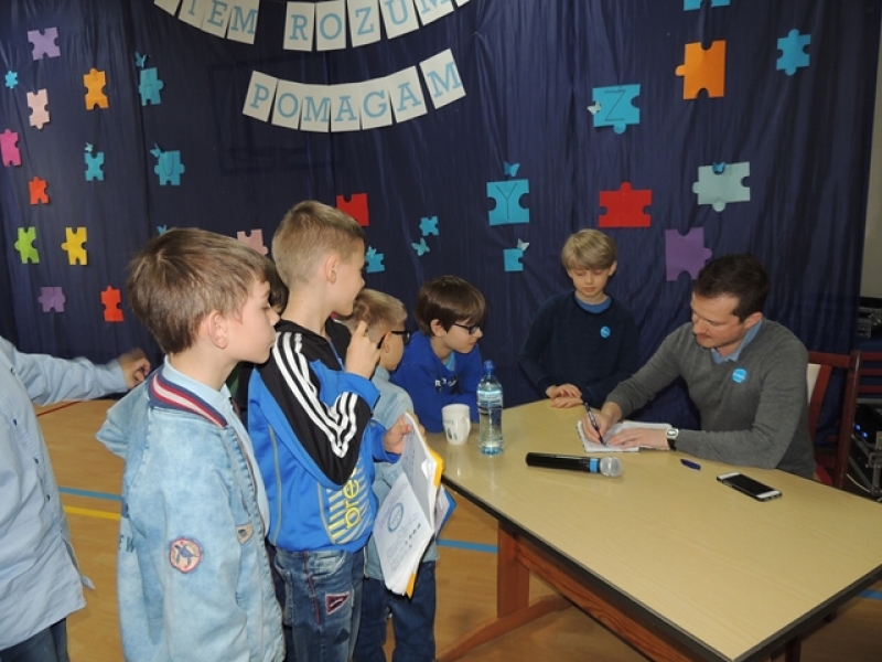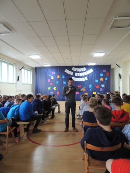 Dnia 08.04.2019 r. w ramach obchodów Światowego Dnia Świadomości Autyzmu w Społecznej Językowej Szkole Podstawowej LTO mieliśmy okazję gościć p. Krzysztofa Tokarskiego – psychologa, wykładowcę, trenera prowadzącego szkolenia dla szkół i przedszkoli z tematów związanych z autyzmem, edukacją włączającą, rozwiązywaniem konfliktów, radzeniem sobie z trudnymi zachowaniami uczniów. Pan Krzysztof przeprowadził pogadankę z dziećmi w dwóch etapach edukacyjnych I - III i IV - VIII na temat: Autyzm - wiem, rozumiem, pomagam. Każdy z uczestników miał możliwość zadawania pytań lub indywidualnej rozmowy z prelegentem.