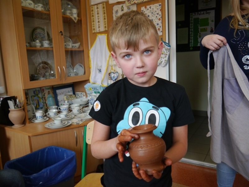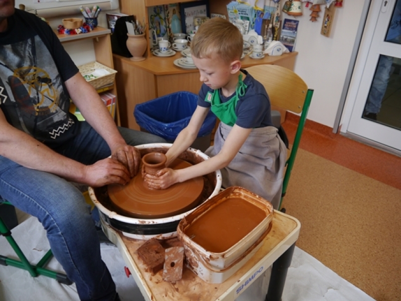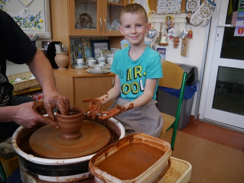 13 maja 2019 r. uczniowie klas drugich uczestniczyli w warsztatach garncarskich, prowadzonych przez p. Pawła Selę z Gowidlina. Zajęcia, realizowane w ramach języka kaszubskiego, były podsumowaniem tematu ,,Ginące rzemiosła na Kaszubach”. Dzieci poradziły sobie doskonale z wykonaniem własnego dzbanka czy miseczki z gliny. Zajęcia praktyczne dostarczyły uczniom wiele satysfakcji.