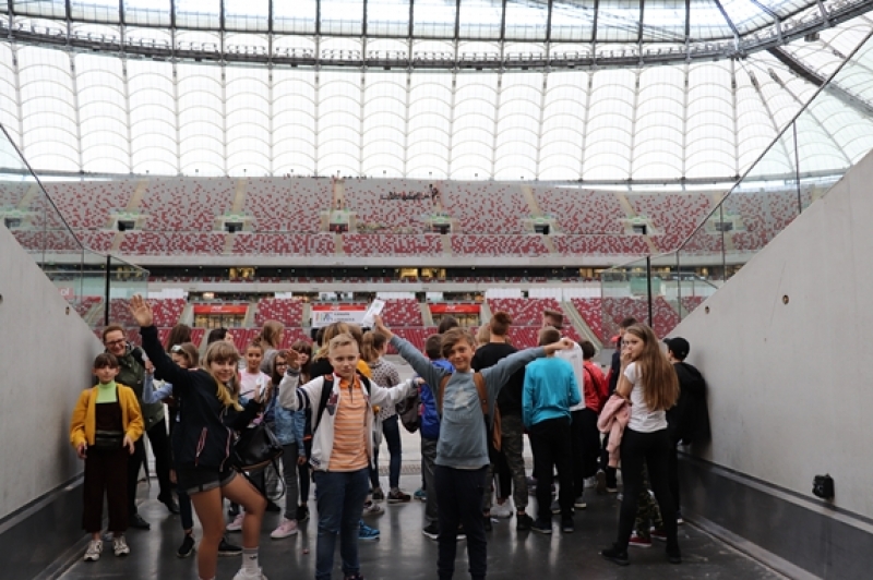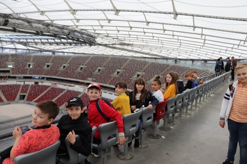 Łazienki warszawskie bardzo przypadły dzieciom do gustu, ich tajemnice i historia, o której opowiadała nam pani przewodnik. Krakowskie przedmieście, zamek, starówka, Pomnik Nieznanego żołnierza, pałac prezydencki, pomnik syrenki i najbardziej oczekiwany Stadion Narodowy to niezapomniane wrażenia, które z pewnością na długo zapadną w naszej pamięci.