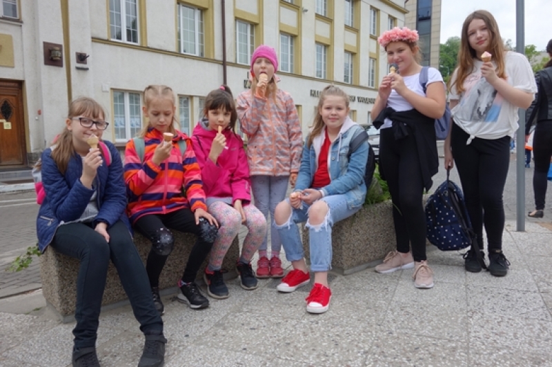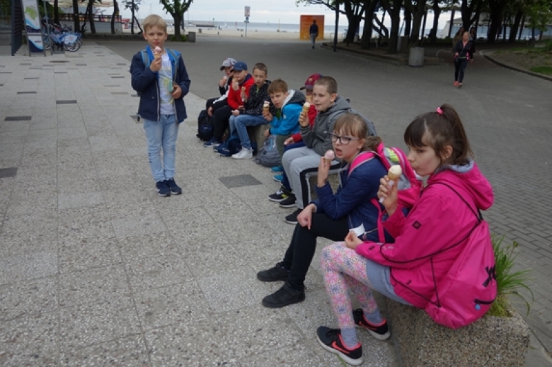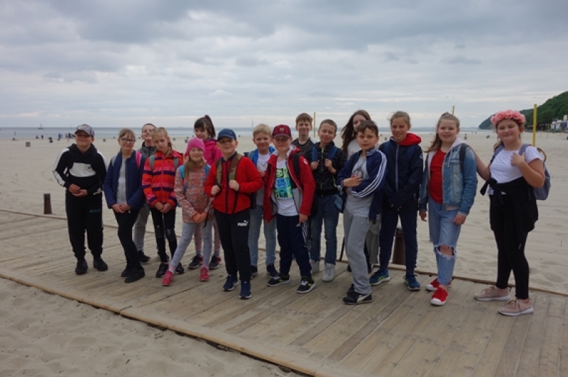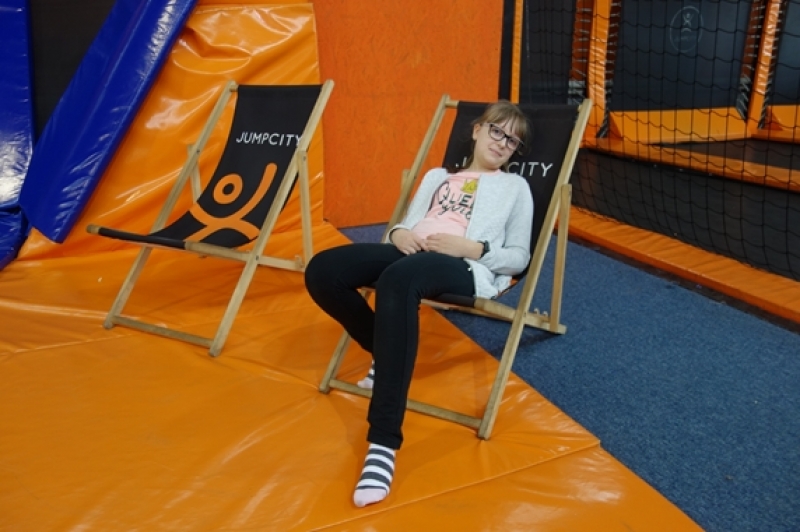 W piątek, 31 maja, uczniowie klasy IV b pojechali na wycieczkę do Gdyni. Rozpoczęliśmy od spaceru na Kamienną Górę, gdzie znajduje się taras widokowy. W pięknej scenerii, z widokiem na Zatokę Gdańską, port jachtowy, Port Gdynia i północne dzielnice miasta, zjedliśmy drugie śniadanie. Później udaliśmy się na plażę i lody. Następnie pojechaliśmy do JUMPCITY. Po zapoznaniu się z regulaminem, wszyscy z radością skakali na trampolinach na różne sposoby. Dużo emocji dostarczył nam mecz w zbijaka, a największym zainteresowanie cieszyły się skoki do dołu z gąbkami. Pobyt w parku trampolin okazał się niezwykłą lekcją wychowania fizycznego. Skacząc na trampolinach, uczniowie rozwijali ogólną sprawność fizyczną i koordynację. Wspólne skakanie wprawiło nas w znakomity nastrój i wyzwoliło mnóstwo pozytywnej energii. Wszyscy zgodnie stwierdzili, że musimy tu jeszcze wrócić!