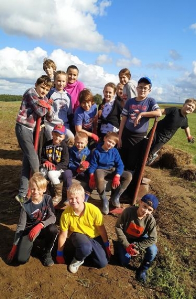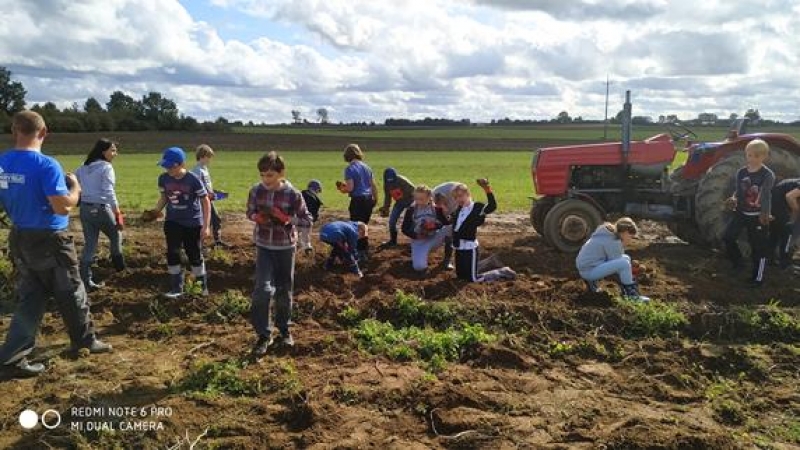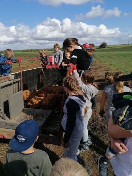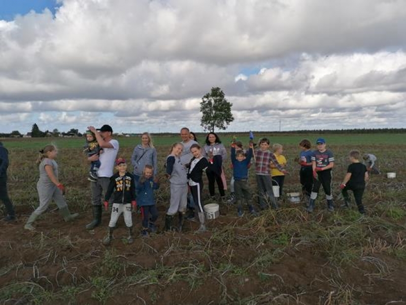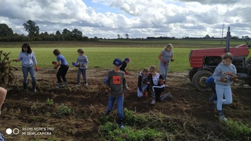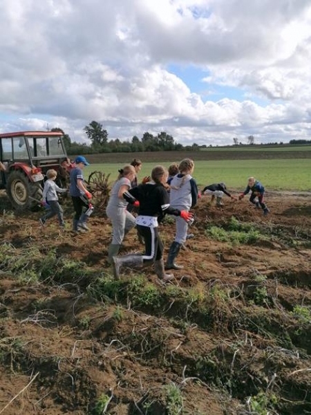 Piątek trzynastego (13.09.2019r.) okazał się być szczęśliwy dla klasy Va - pogoda dopisała i udało się wyruszyć na długo przez wszystkich wyczekiwane wykopki. Aktywna integracja klasy odbyła się we wspaniałej atmosferze. Na pomoc przybyli również rodzice, którzy chcieli powspominać szkolne czasy, jednak szybko okazało się, że to młodzież była bardziej efektywna w zbieraniu ziemniaków. Zabawa połączona była z nauką - Pan Gospodarz pokazał różne sprzęty wykorzystywane podczas wykopków - od najbardziej podstawowych do używanych współcześnie nowoczesnych maszyn. Następnie odbyły się mini zawody, a nagrodą dla wszystkich drużyn było ognisko pełne smakowitych przysmaków.
