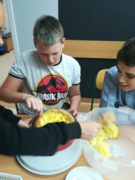 Na lekcji biologii uczniowie klasy VIIa zbudowali model komórki w wymiarze 3D. Był on nietypowy, bo całkowicie jadalny. Młodzież miała okazję uczyć się, widząc komórkę centralnie przed sobą. To były bardzo ciekawe zajęcia.