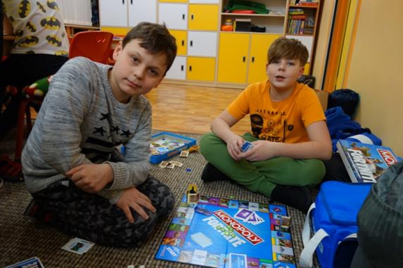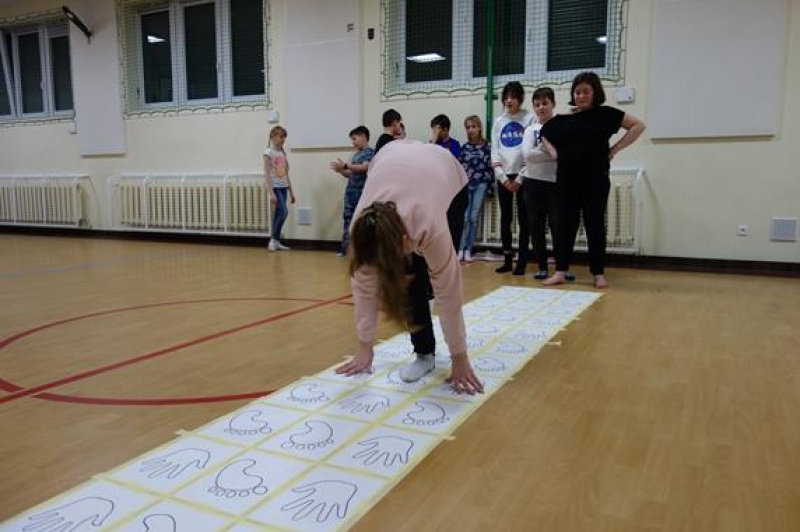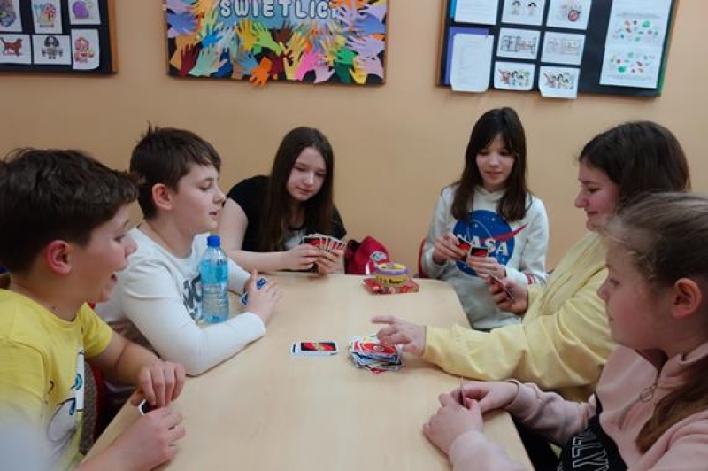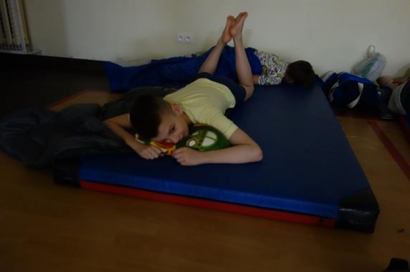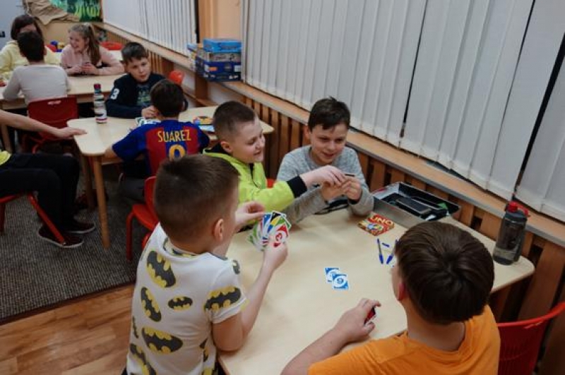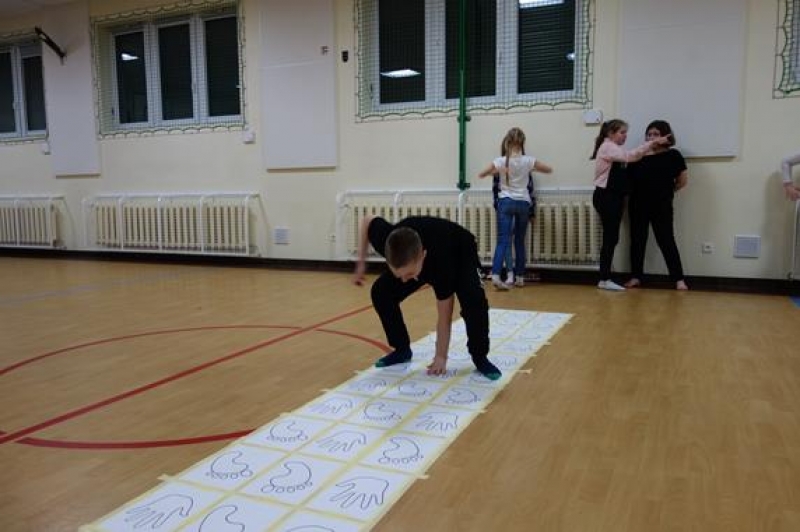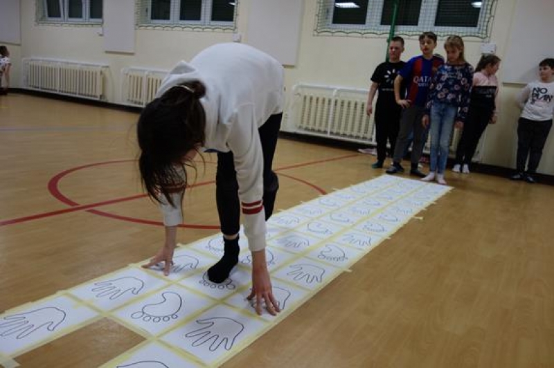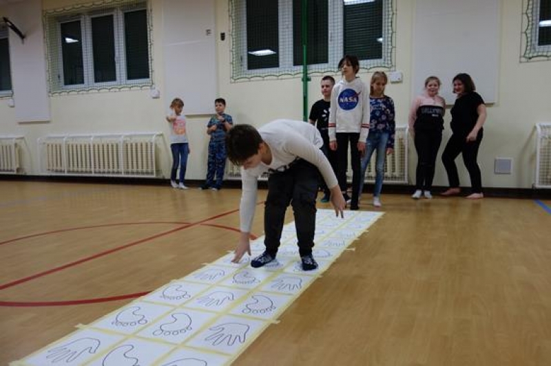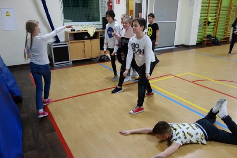 Wieczór rozpoczęliśmy w świetlicy szkolnej, gdzie graliśmy w gry karciane i planszowe. Później, żeby spożytkować trochę energii, udaliśmy się na salę gimnastyczną, aby rozegrać mecz w „Dwa ognie” i pobawić się w zabawę, którą każdy pamięta z dzieciństwa - „Raz, dwa, trzy, Baba Jaga patrzy”. Po aktywności fizycznej dla wszystkich głodomorów czekała pizza. Następnie bawiliśmy się w podchody, które wszystkim dostarczyły bardzo dużo pozytywnych emocji. Uczniowie zmierzyli się również z grą zwinnościową „Rączki, nóżki”, która do łatwych nie należy, szczególnie jak się w nią gra o godz. 23. Było dużo śmiechu i radości z zabawy. Po północy obejrzeliśmy film i nad ranem, po długich rozmowach poszliśmy spać. Szkoda, że tak szybko była pobudka. Ta noc minęła zdecydowanie za szybko!
