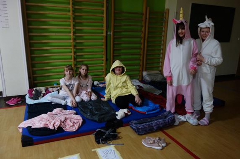 Po raz pierwszy uczniowie klasy 5 b mieli okazję zostać w szkole na noc. Długo oczekiwana impreza rozpoczęła się o godz. 19:30 w piątek, 6 marca, a zakończyła w sobotę o godz. 7:30 rano.