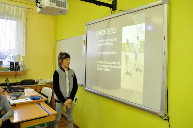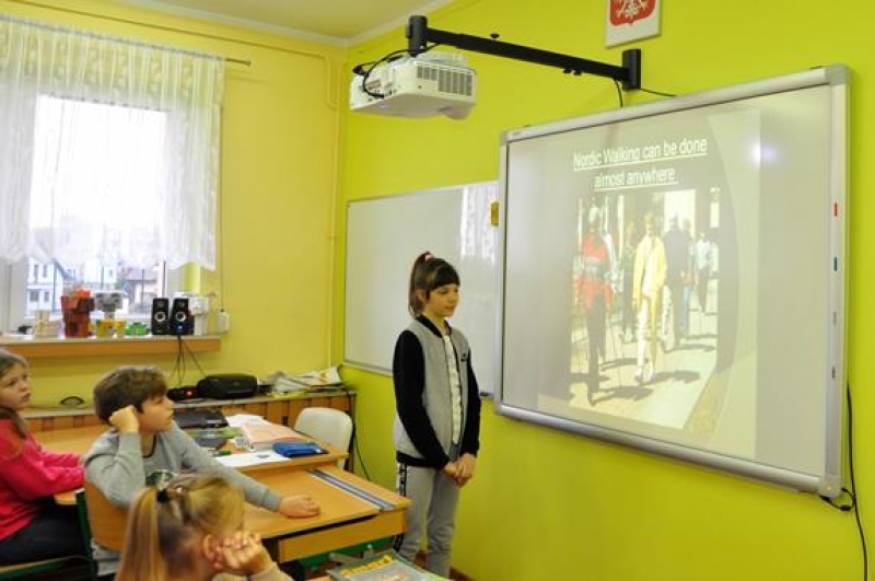 Nordic Walking is Fun! – to hasło jednej z lekcji języka angielskiego przeprowadzonej 28 października w klasie 5b. Zajęcia wprowadziły uczniów w tajniki tego sportu i przygotowały na późniejszy trening z profesjonalistą. Uczniowie dowiedli, że chcieć to móc i z entuzjazmem poznawali oraz prezentowali w języku angielskim zagadnienia związanie z tą dyscypliną sportu. Z wykorzystaniem technik multimedialnych oraz tych tradycyjnych, zapoznaliśmy się z najistotniejszymi ciekawostkami dotyczącymi Nordic Walking. Powstał również plakat, który jeszcze tego dnia uczniowie wręczyli prowadzącej trening - Pani Aleksandrze Czeczott-Szymańskiej, Prezes Stowarzyszenia Nordic Walking „Orły” Wicko.