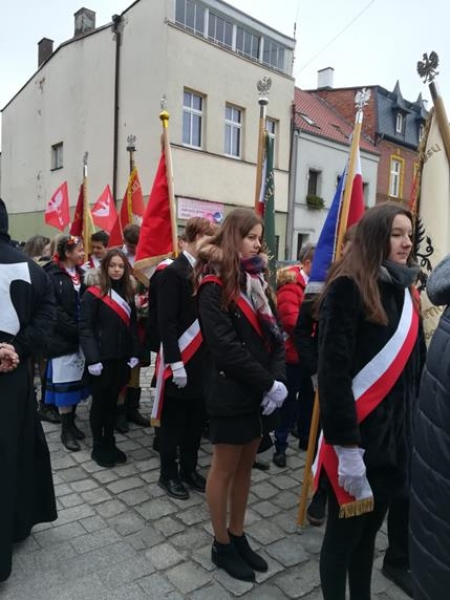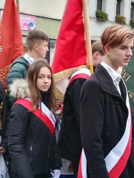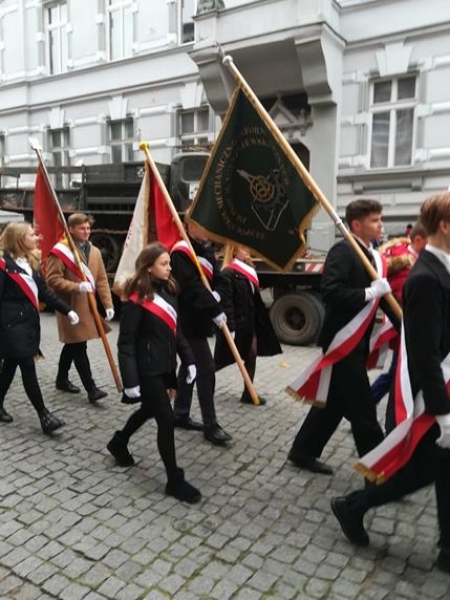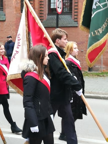 Lębork uroczyście obchodził 101 rocznicę odzyskania niepodległości. Po mszy świętej w sanktuarium św. Jakuba Apostoła lęborczanie przemaszerowali pod Obelisk Niepodległości przy ul. Wojska Polskiego. W obchodach wzięła także udział delegacja uczniów z naszej szkoły.