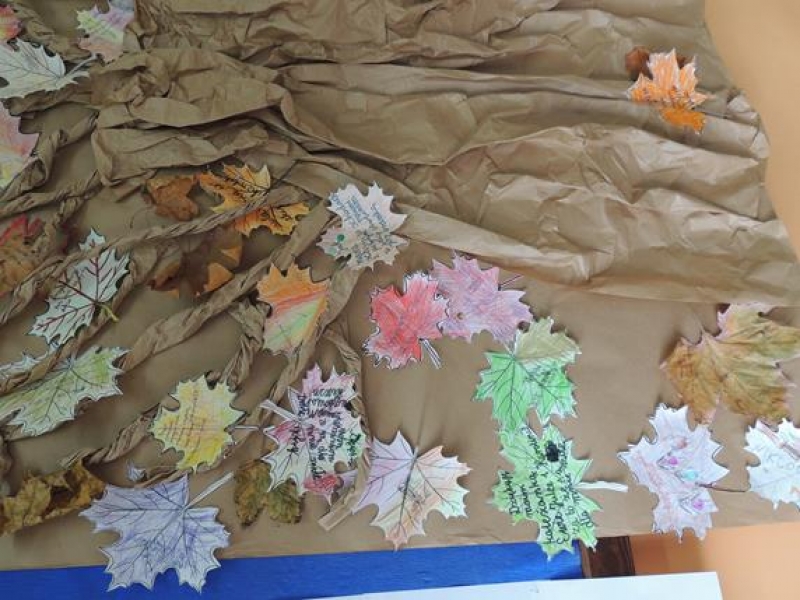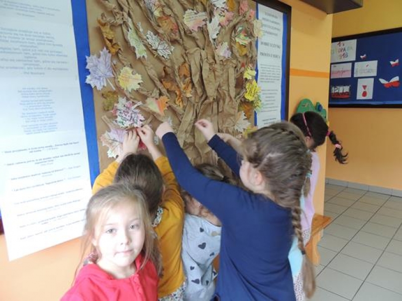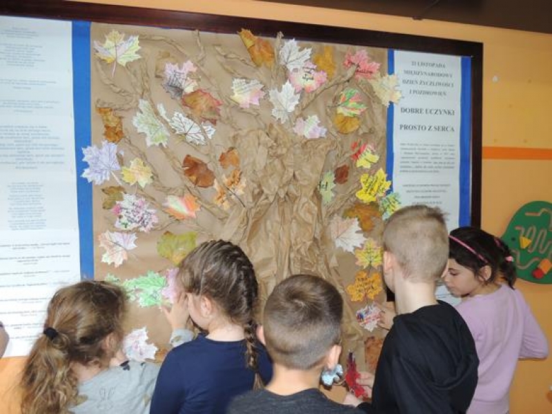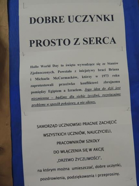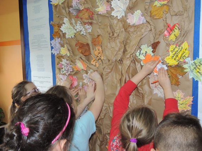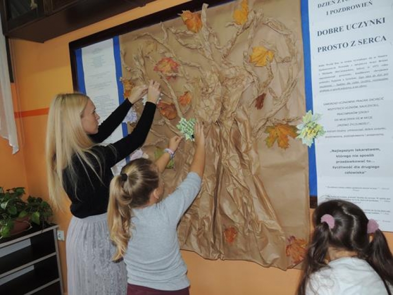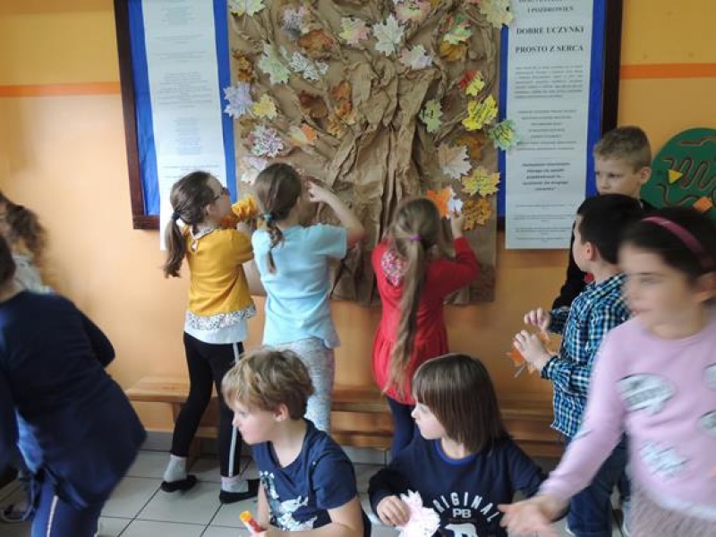 Dziś na szkolnym korytarzu zawisło papierowe drzewo, na którym można umieszczać: dobre uczynki, pozdrowienia, podziękowania i przeprosiny. Z niecierpliwością czekamy na efekt końcowy...