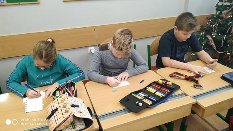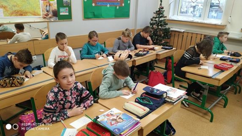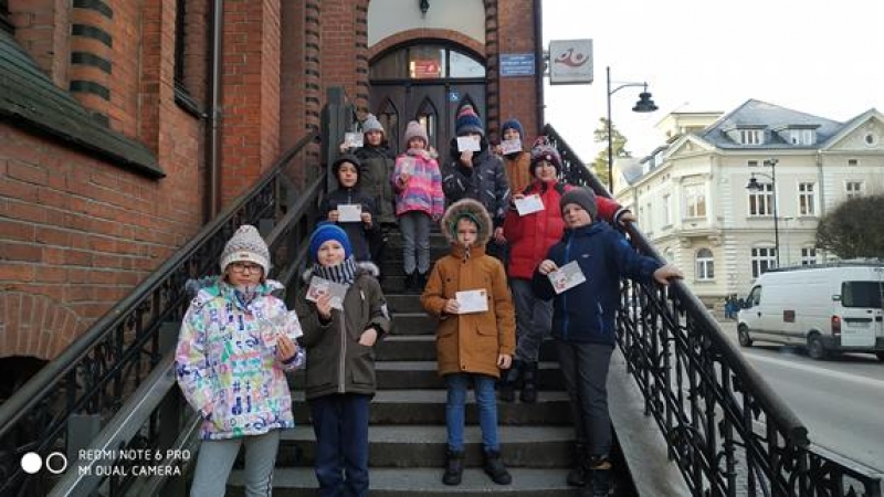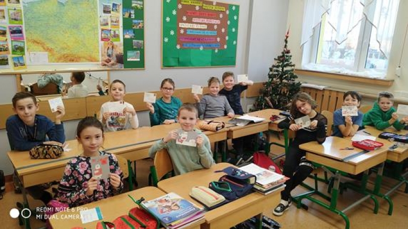 Uczniowie klasy 3a wysyłają kartki świąteczne