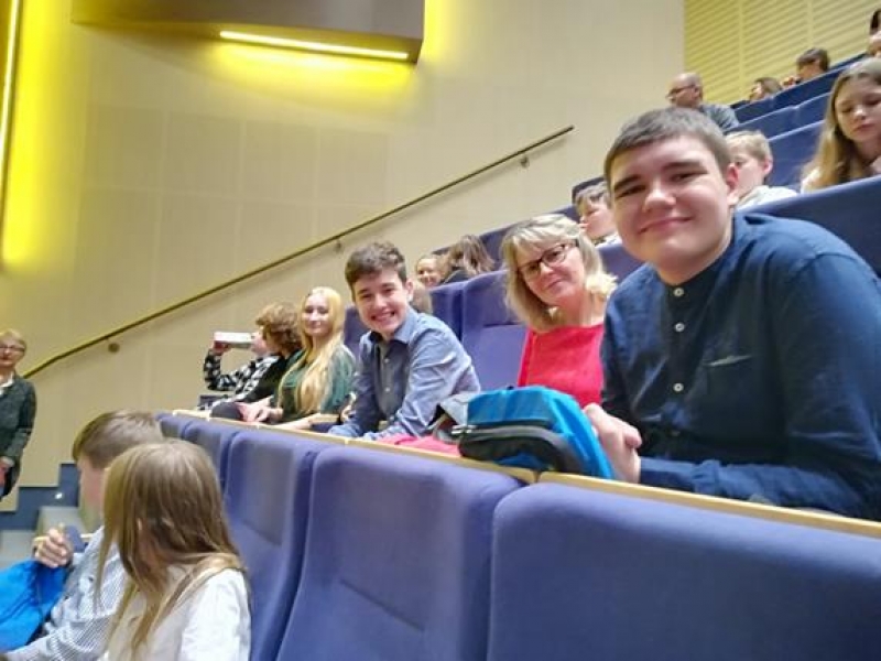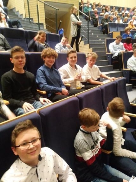 13 grudnia 2019 r klasy VI a i b oraz VIII a i b udały się na wieczorny spektakl do Teatru Muzycznego w Gdyni na sztukę „ Skrzypek na dachu” .