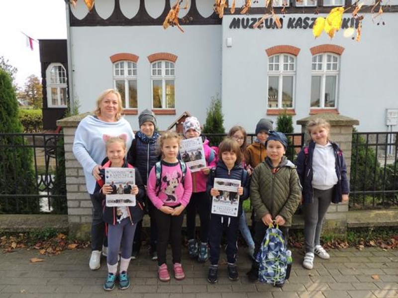 16 października 2019 r. uczniowie klasy pierwszej wybrali się do Kartuz, aby pod kierunkiem przewodnika zapoznać się z zasobami Muzeum Kaszubskiego oraz uczestniczyć w organizowanych tam warsztatach ,,Gęsim piórem pisane”. Z Kartuz pierwszoklasiści udali się do Tuchlina, aby zobaczyć egzotyczne zwierzęta w ,,Kaszubskim Zoo”. Dzieci obejrzały także ciekawy film o życiu i zwyczajach zwierząt wodnych. Dzieci wróciły z wycieczki bardzo zadowolone.