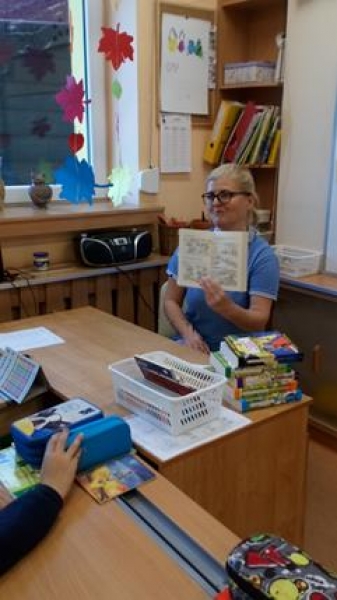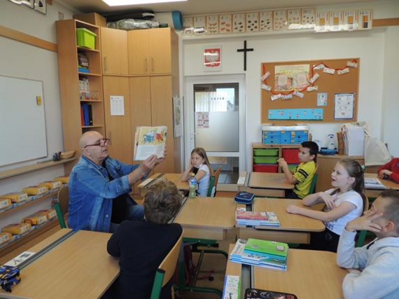 Na przełomie września i października 2020 r. odbyła się w naszej placówce szkolna edycja ogólnopolskiej akcji ,,Cała Polska Czyta Dzieciom”, która objęła uczniów klas I-III. Badania i praktyka pokazują ,że czytanie dziecku buduje mocną więź między czytającym dorosłym i dzieckiem, rozwija emocjonalnie i społecznie, uczy języka i myślenia, wydłuża koncentrację i wrażliwość moralną oraz kształtuje na całe życie nawyk czytania i zdobywania wiedzy. W tegorocznej edycji dzieciom młodszym teksty czytały osoby pracujące w szkole, ale niezwiązane bezpośrednio z uczeniem. Byli to: p. Zdziesław Sobczak ( administrator), p. Ewa Wojciechowska (sekretarka), p. Wiesława Naczk (obsługa) oraz p.Joanna Woźniakowska (bibliotekarka). Uczniowie mieli okazję poznać te osoby z innej, niecodziennej strony, co było dodatkową atrakcją tej akcji.