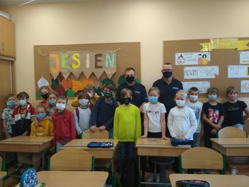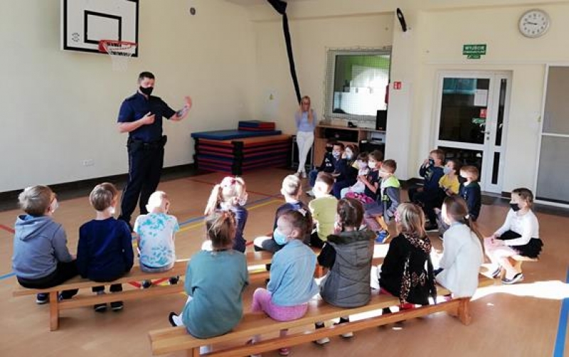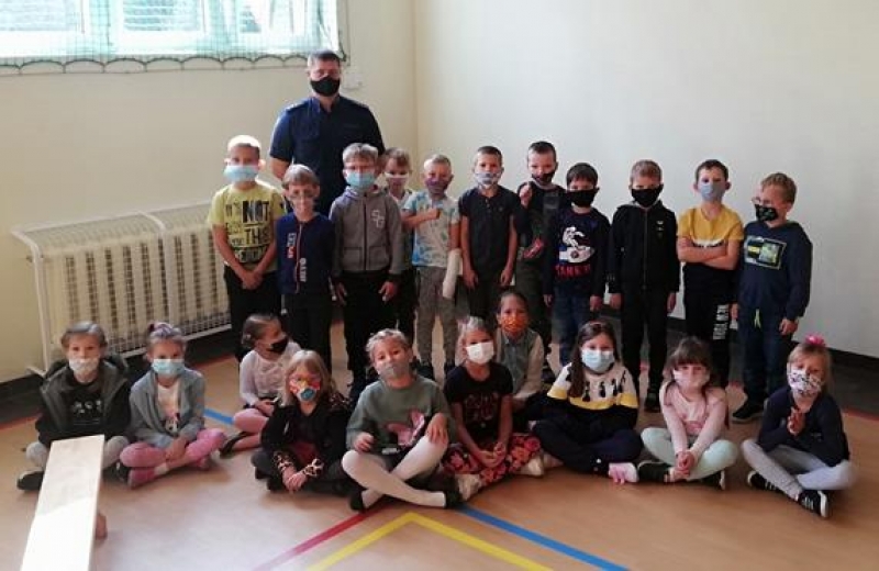 W naszej szkole zagościli Policjanci. Spotkali się z uczniami klas 1-5 w celu omówienia zasad bezpiecznego poruszania się po drodze, zarówno pieszo jak i samochodem. Przypomnieli dzieciom numery alarmowe, których znajomość jest niezbędna w celu uzyskania natychmiastowej pomocy.