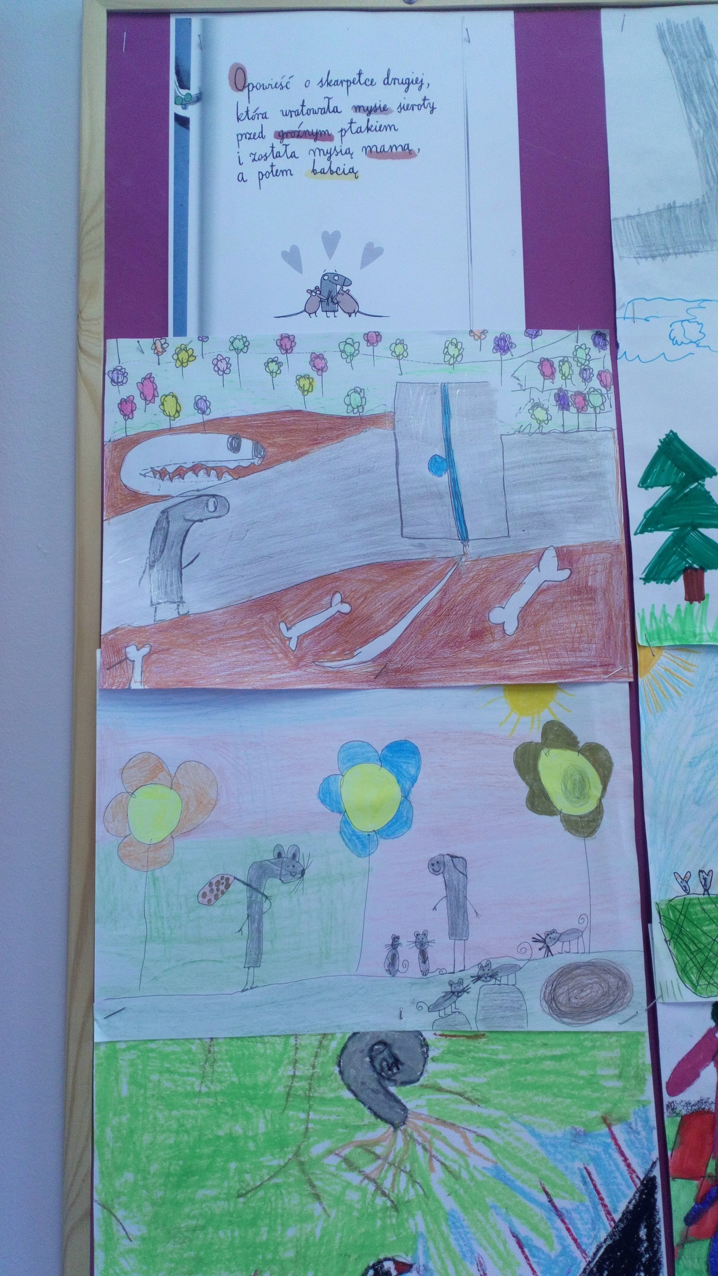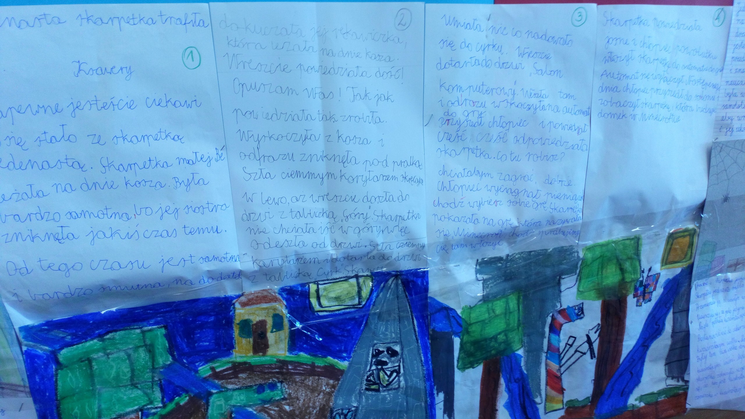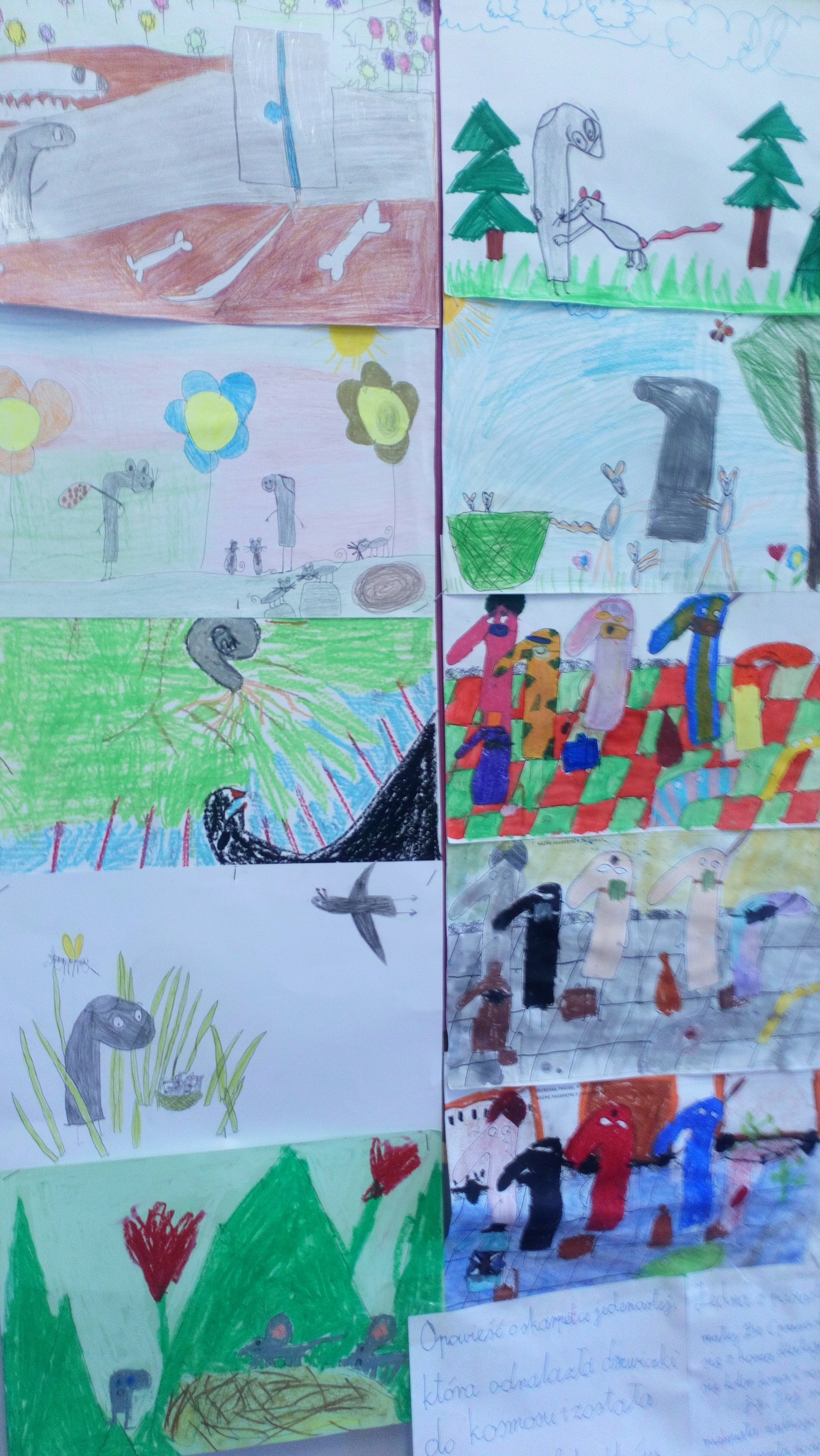 Drugoklasiści, po zapoznaniu się z lektura Justyny Bednarek ,,Niesamowite przygody dziesięciu skarpetek” spróbowali swoich sił w …pisaniu kolejnych rozdziałów tej lektury. Zadaniem dzieci było wymyślenie - opisanie i zilustrowanie - przygody jedenastej skarpetki. Efekty ich pracy znalazły się na klasowej gazetce. Dodatkową atrakcją była możliwość indywidualnego odczytania wymyślonej przygody swoim kolegom i koleżankom w klasie. Taka forma pracy z lekturą przyniosła dzieciom wiele satysfakcji.