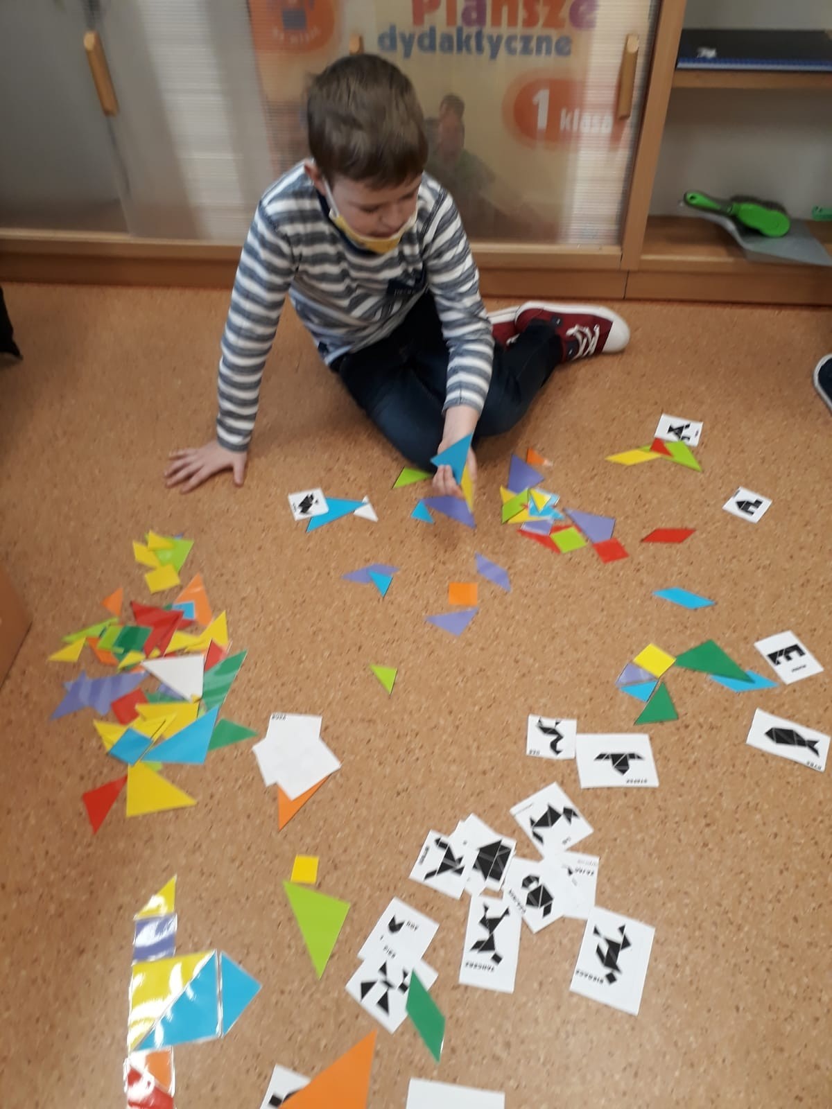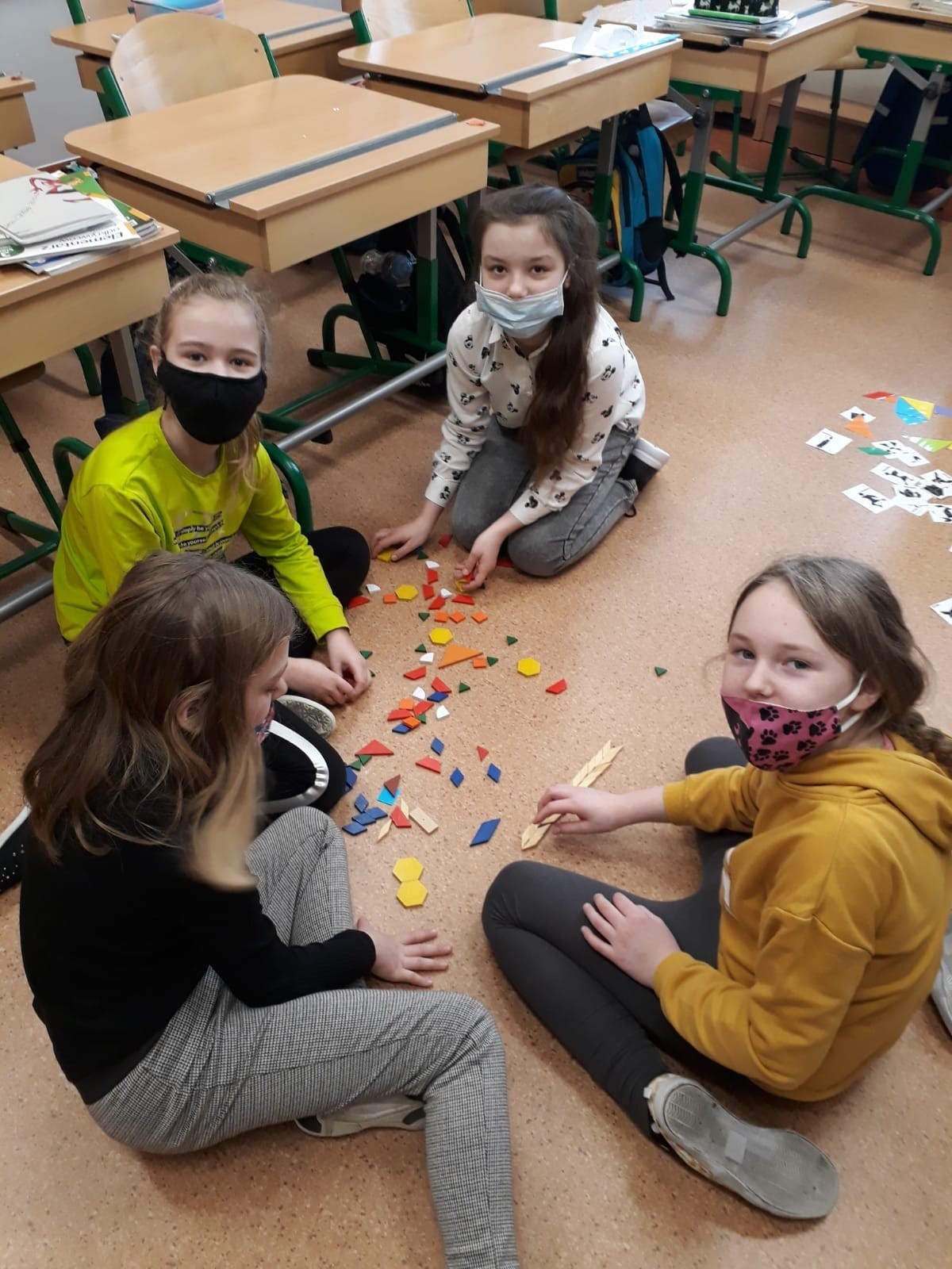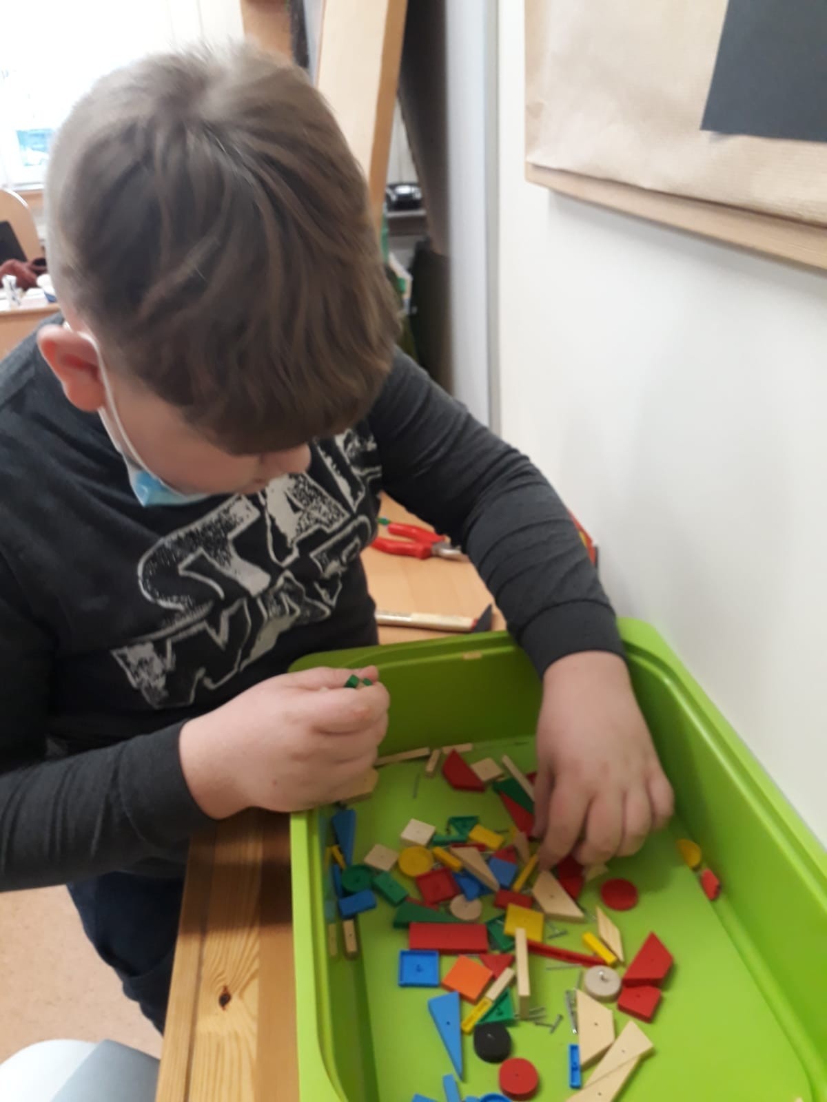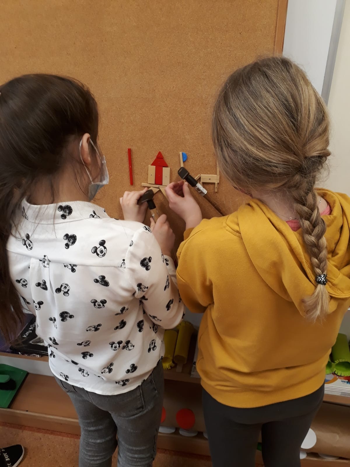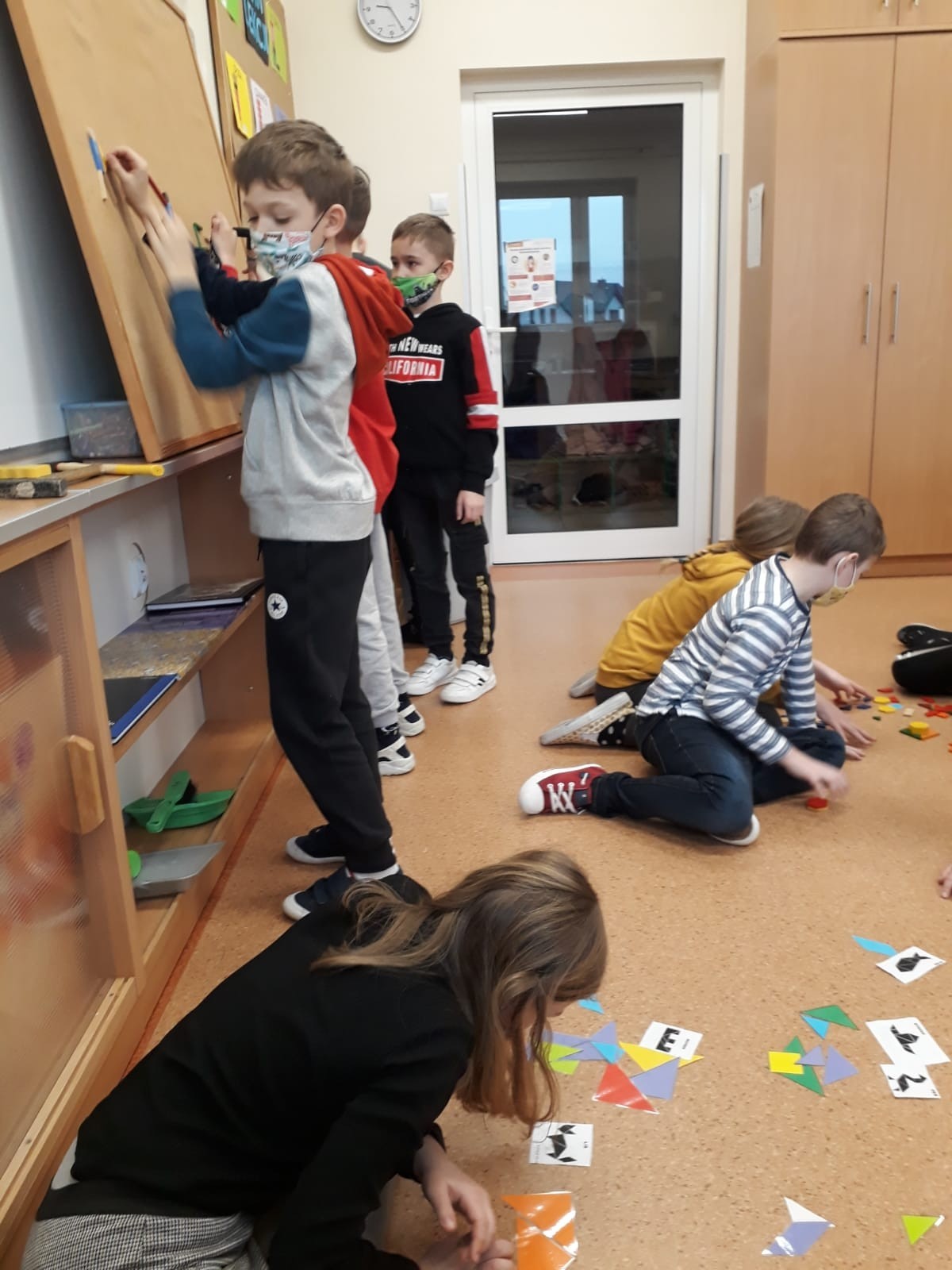 W dniu 2. marca 2021 r. klasa III A w wyjątkowy sposób spędziła czas podczas zajęć lekcyjnych. Uczniowie mogli układać figury przy użyciu tangramu oraz drewnianej mozaiki. Do dyspozycji dzieci były też młotki i drewniane klocki geometryczne, które przy użyciu gwoździ i odrobiny siły tworzyły ciekawe obrazki.
